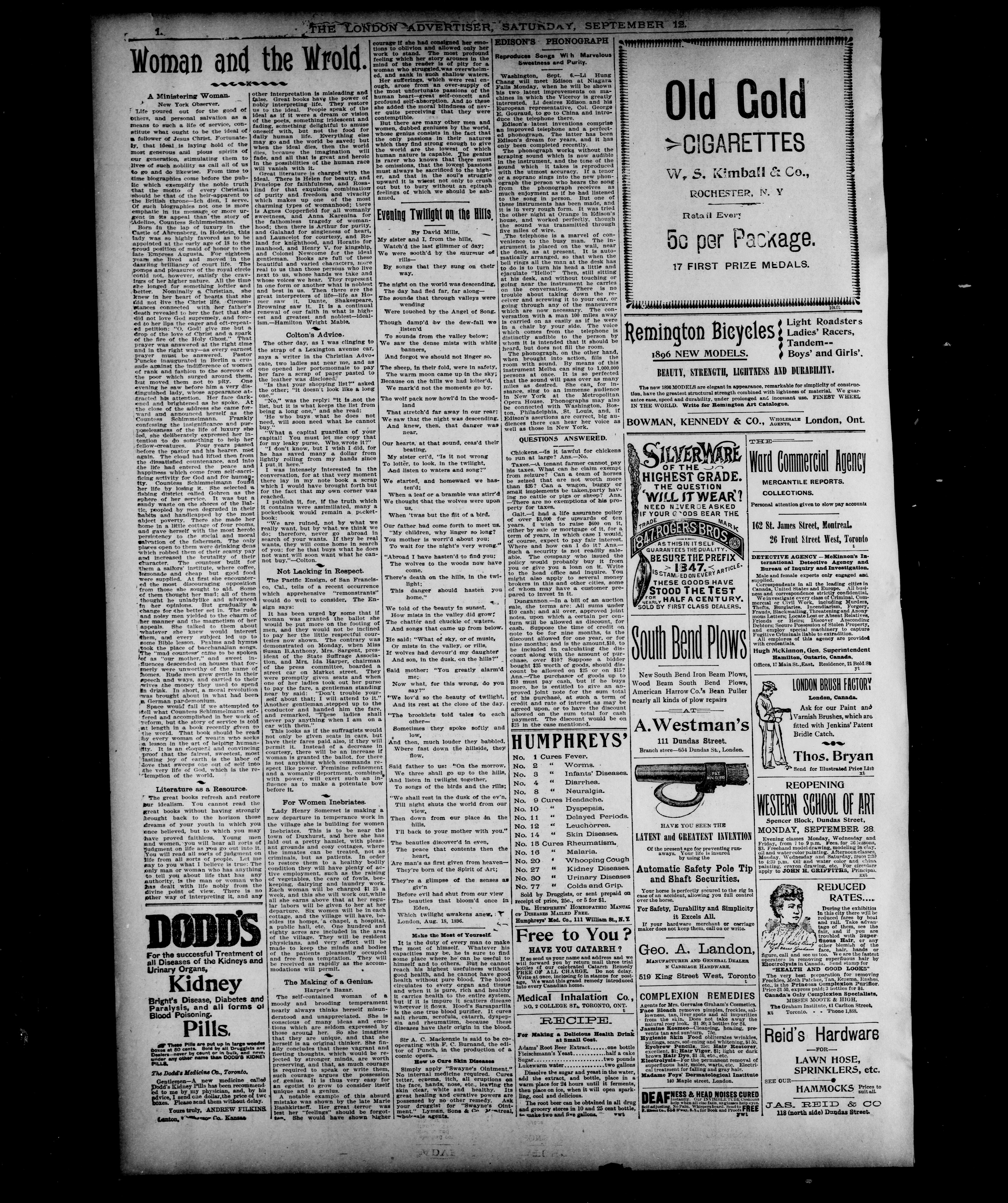 - London Advertiser : Vol. XXXIII, No. 277 (September 12, 1896)