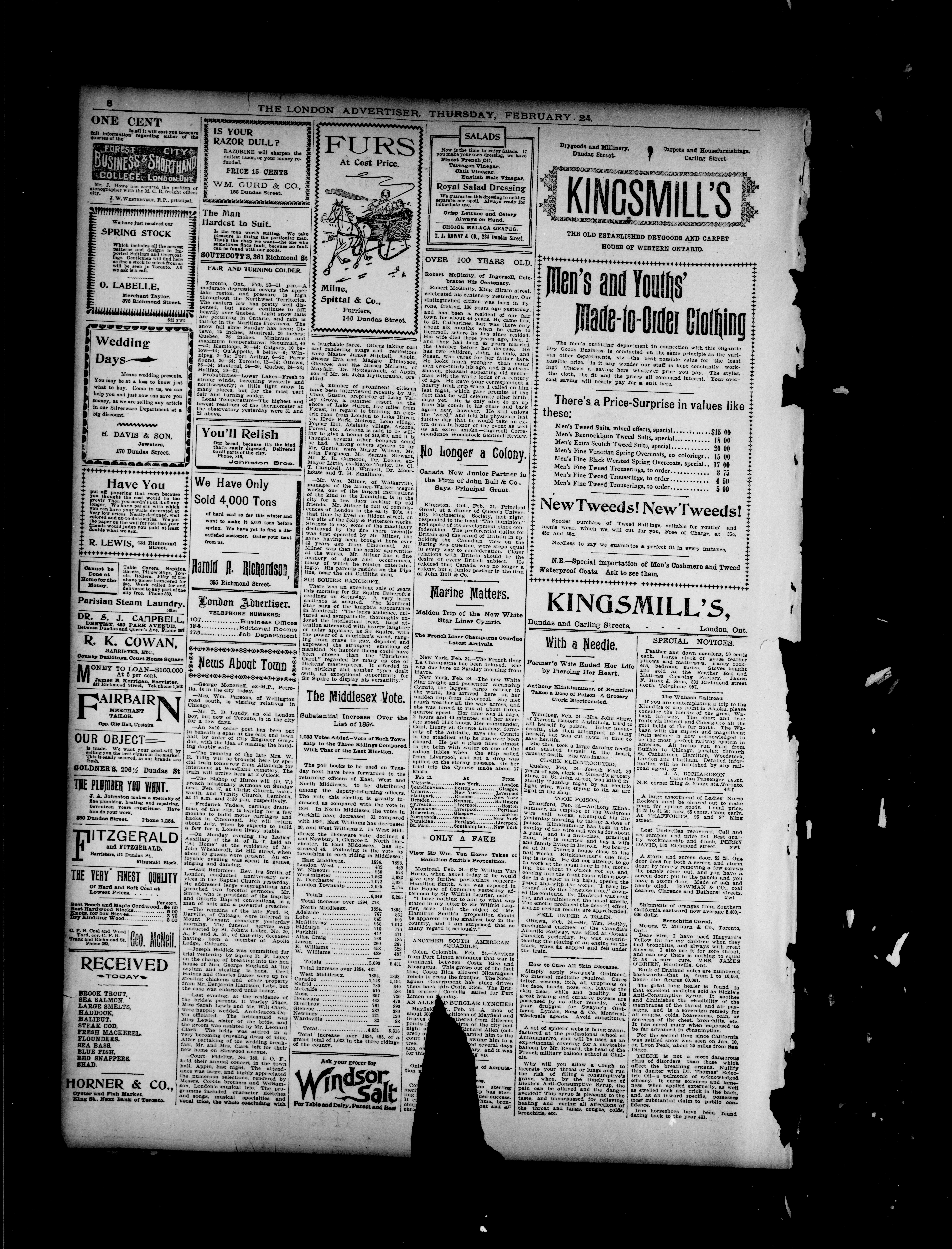 London advertiser. : London Advertiser : Vol. XXXV, No. 102 (February 24, 1898)