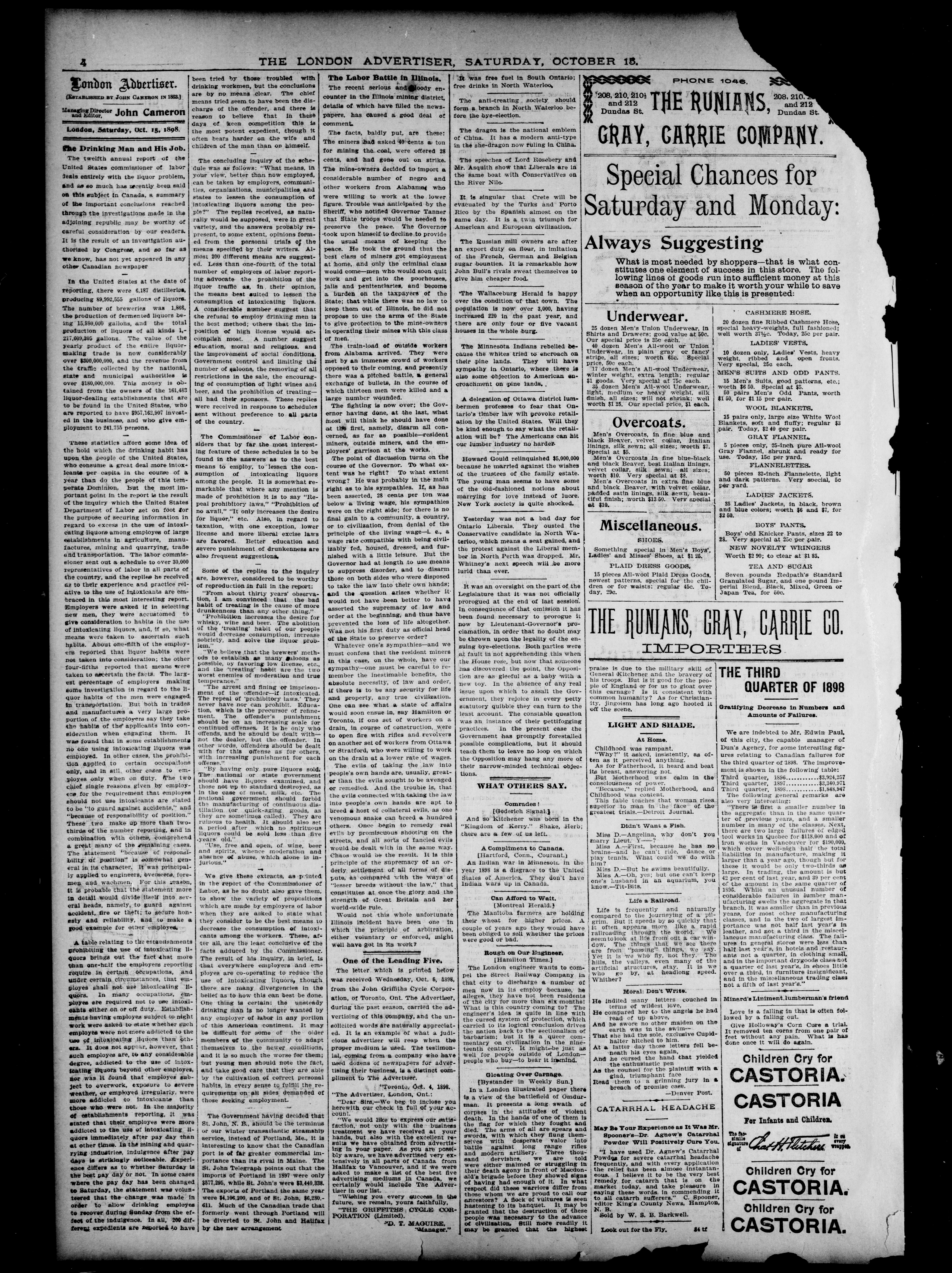 London Advertiser : Vol. XXXV, No. 301 (October 15, 1898)