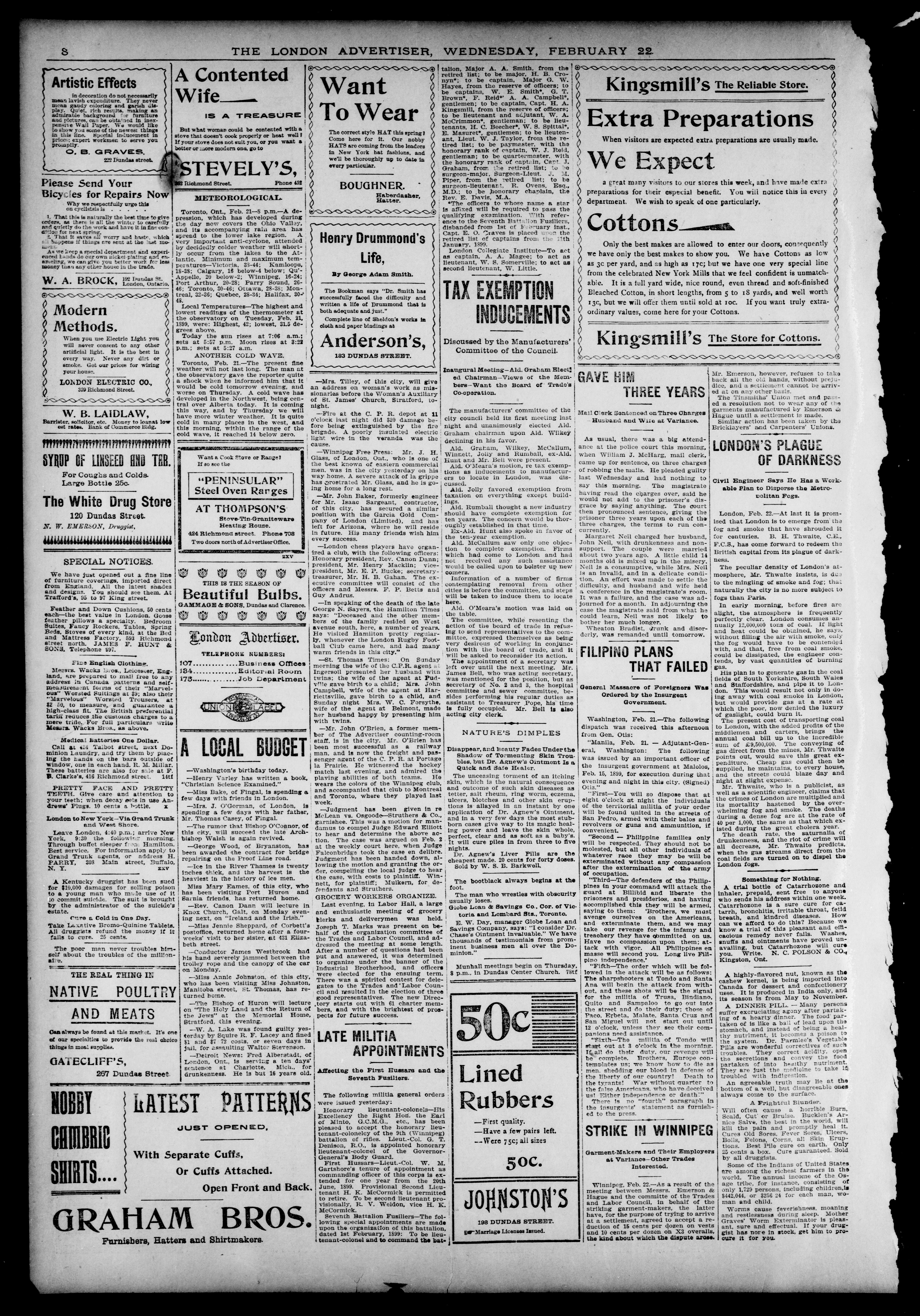 London Advertiser : Vol. XXXVI, No. 97 (February 22, 1899)