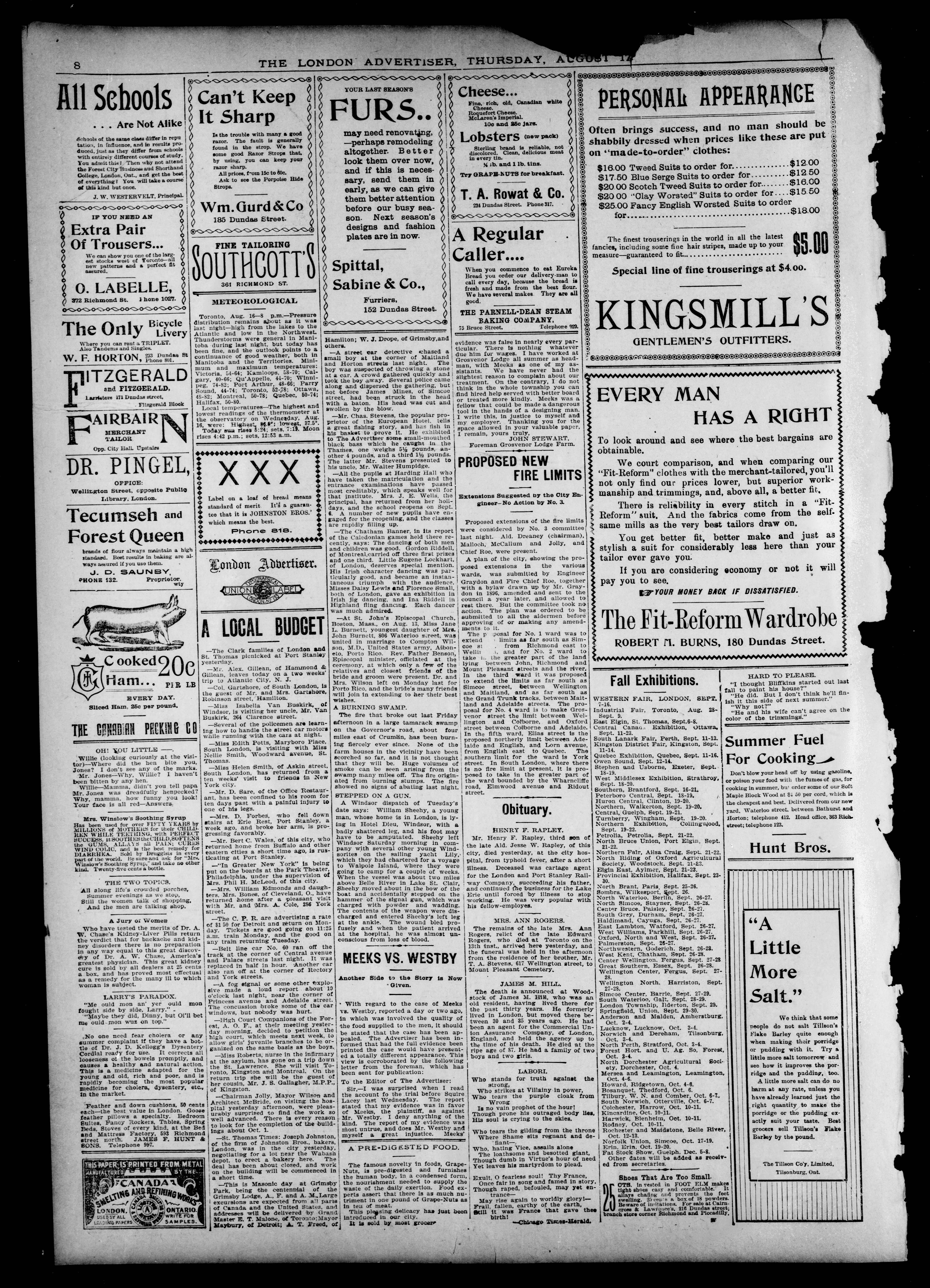 London advertiser. : London Advertiser : Vol. XXXVI, No. 247 (August 17, 1899)