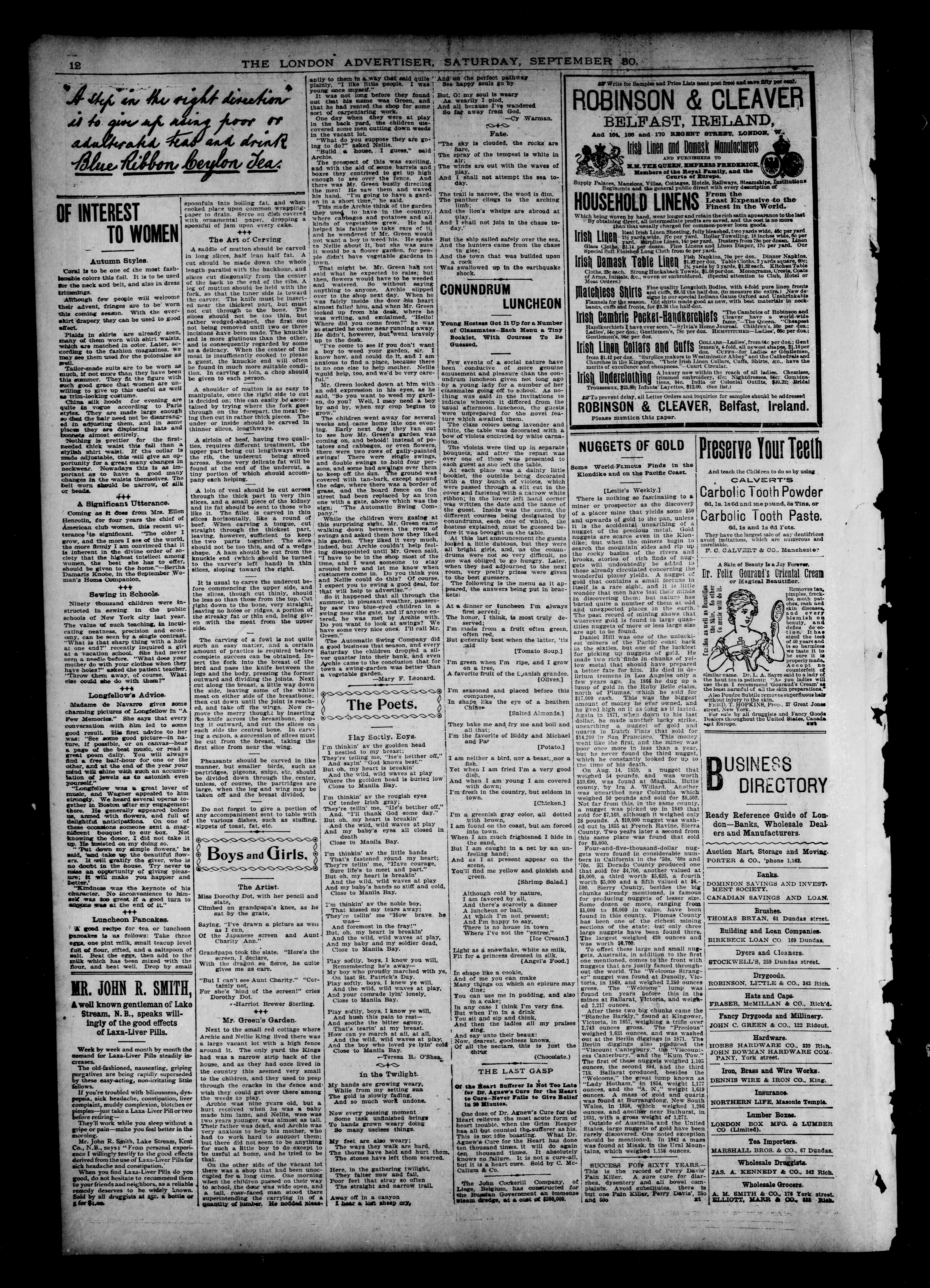 - London Advertiser : Vol. XXXVI, No. 255 (September 30, 1899)