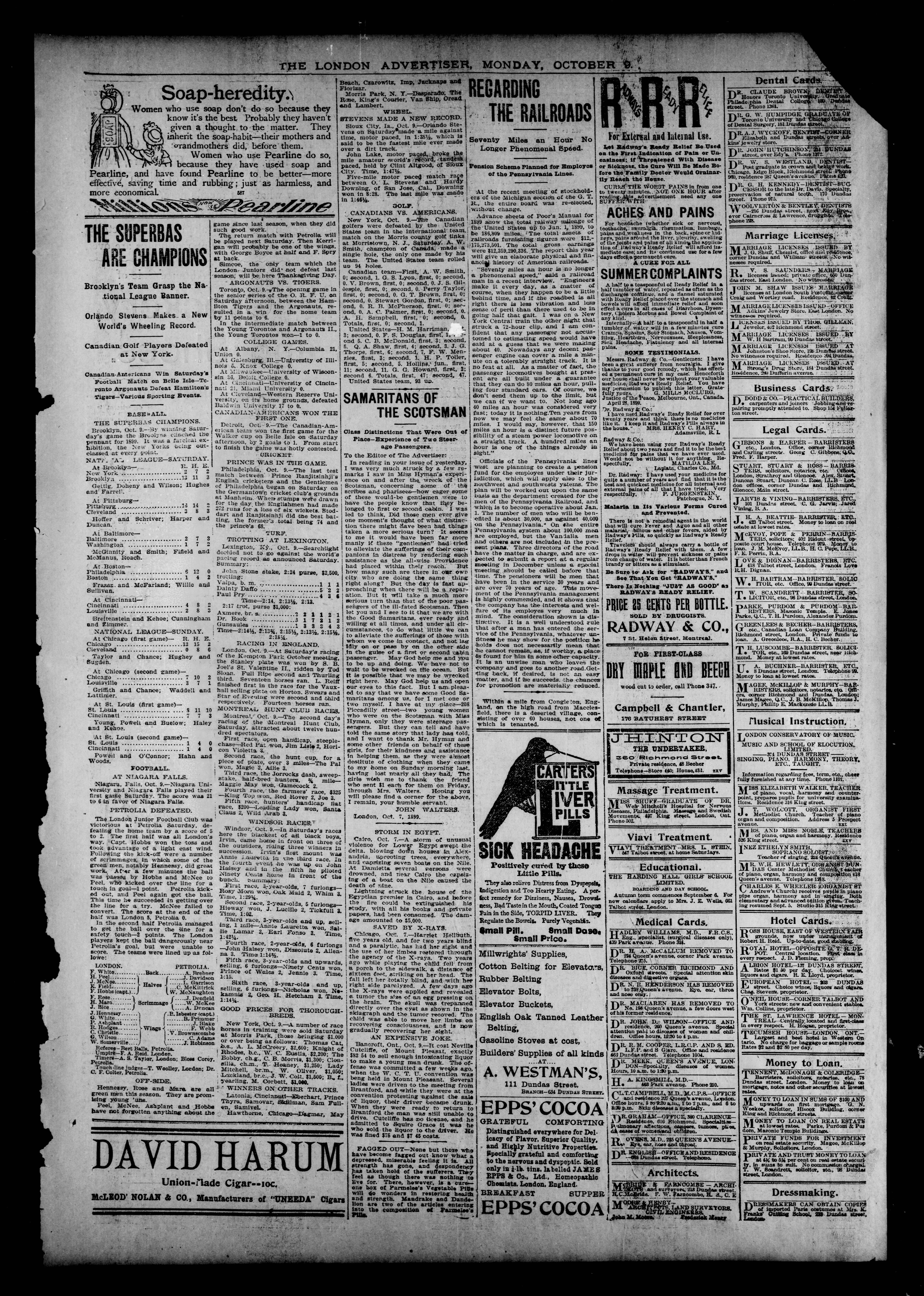 London Advertiser : Vol. XXXVI, No. 262 (October 9, 1899)