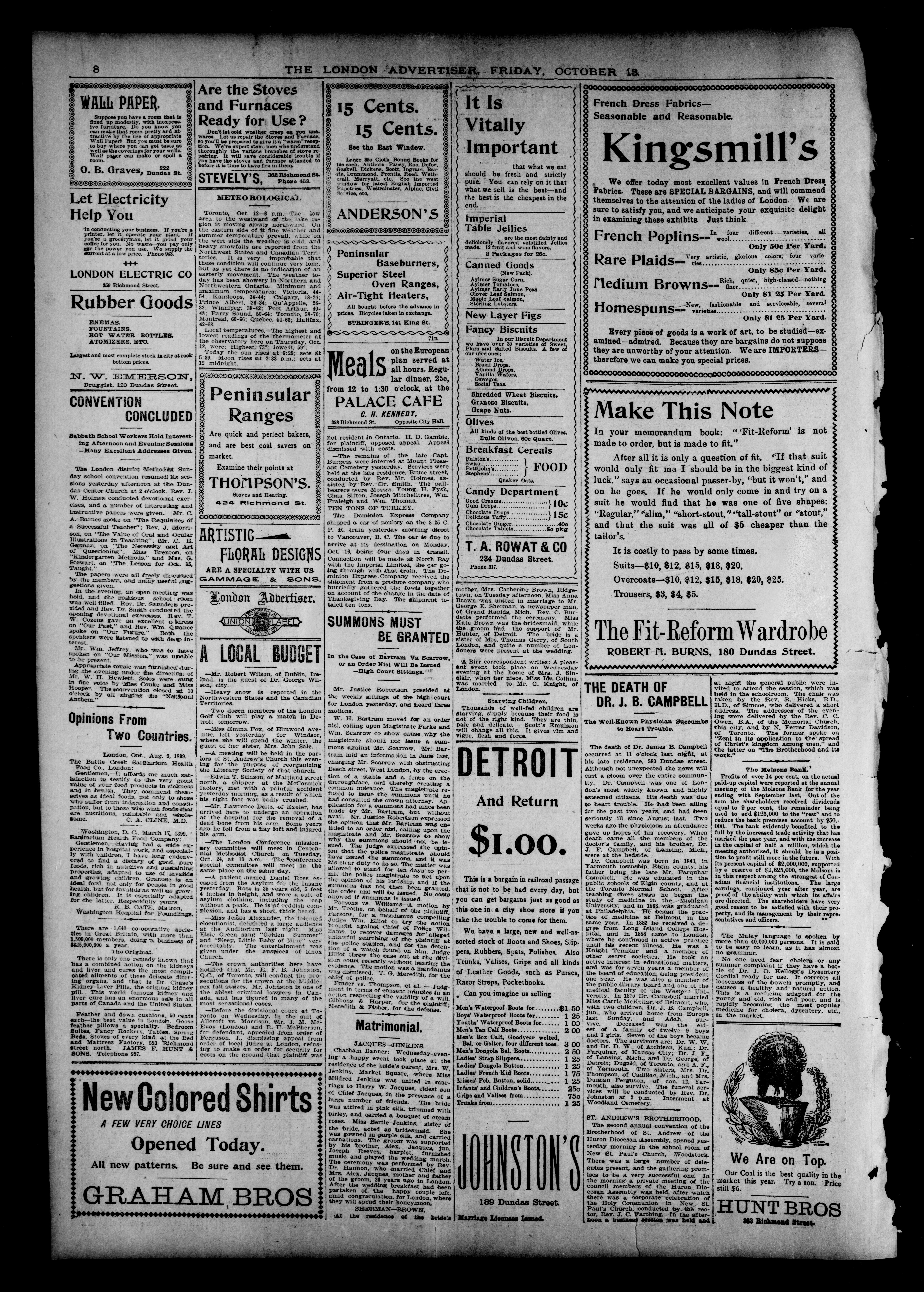 London advertiser. : London Advertiser : Vol. XXXVI, No. 266 (October 13, 1899)