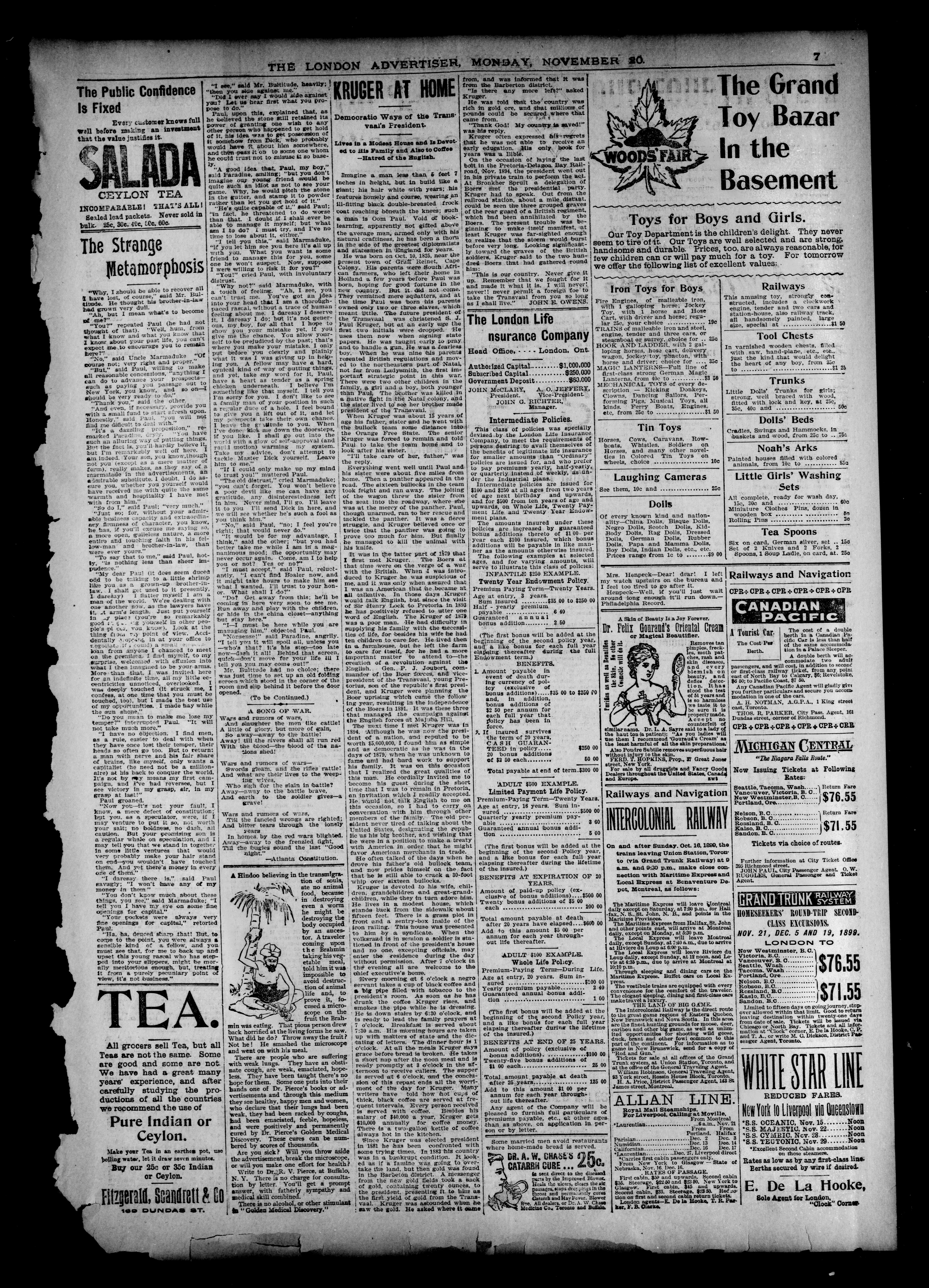 - London Advertiser : Vol. XXXVI, No. 298 (November 20, 1899)