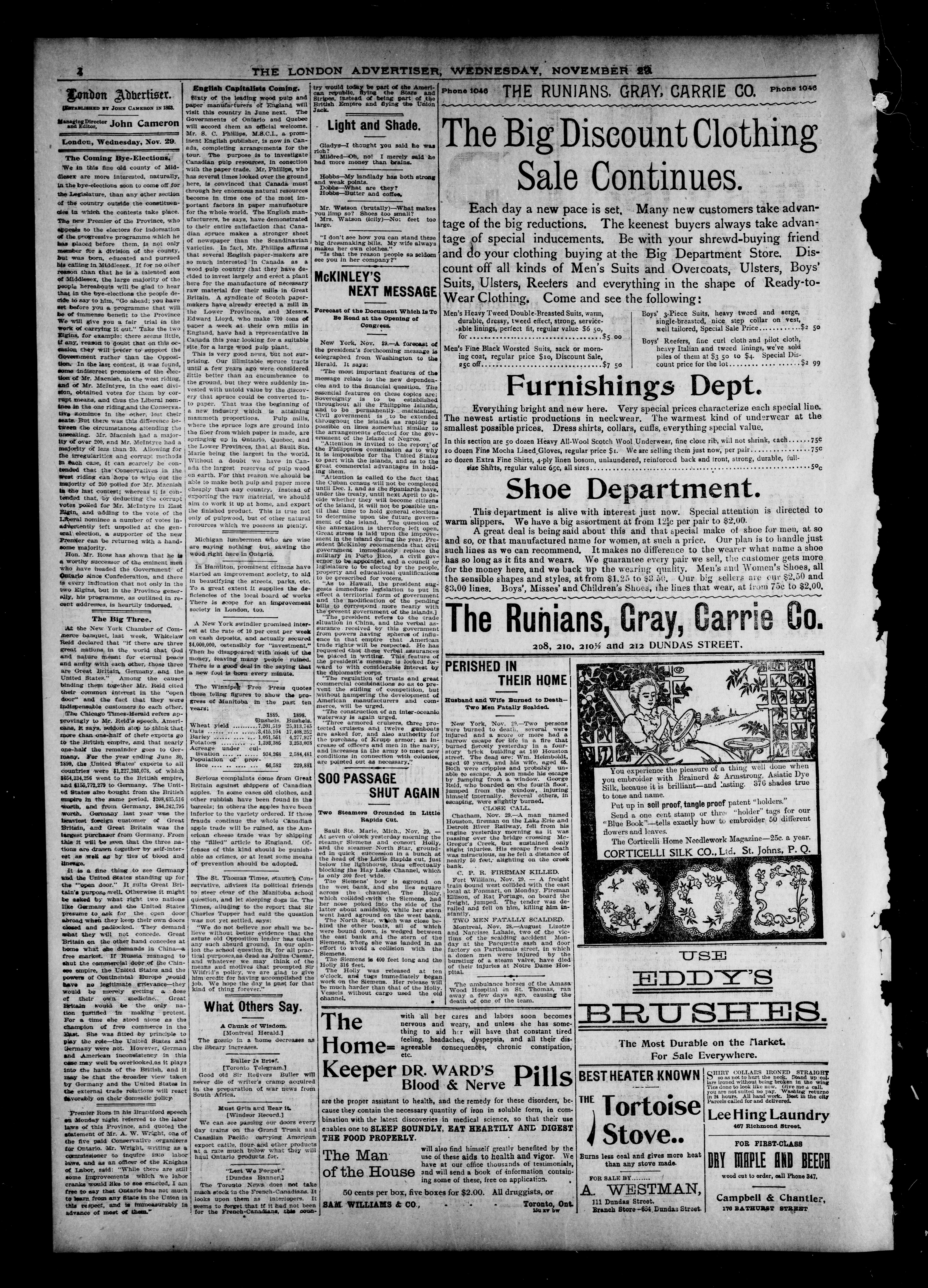 London advertiser. : London Advertiser : Vol. XXXVI, No. 306 (November 29, 1899)