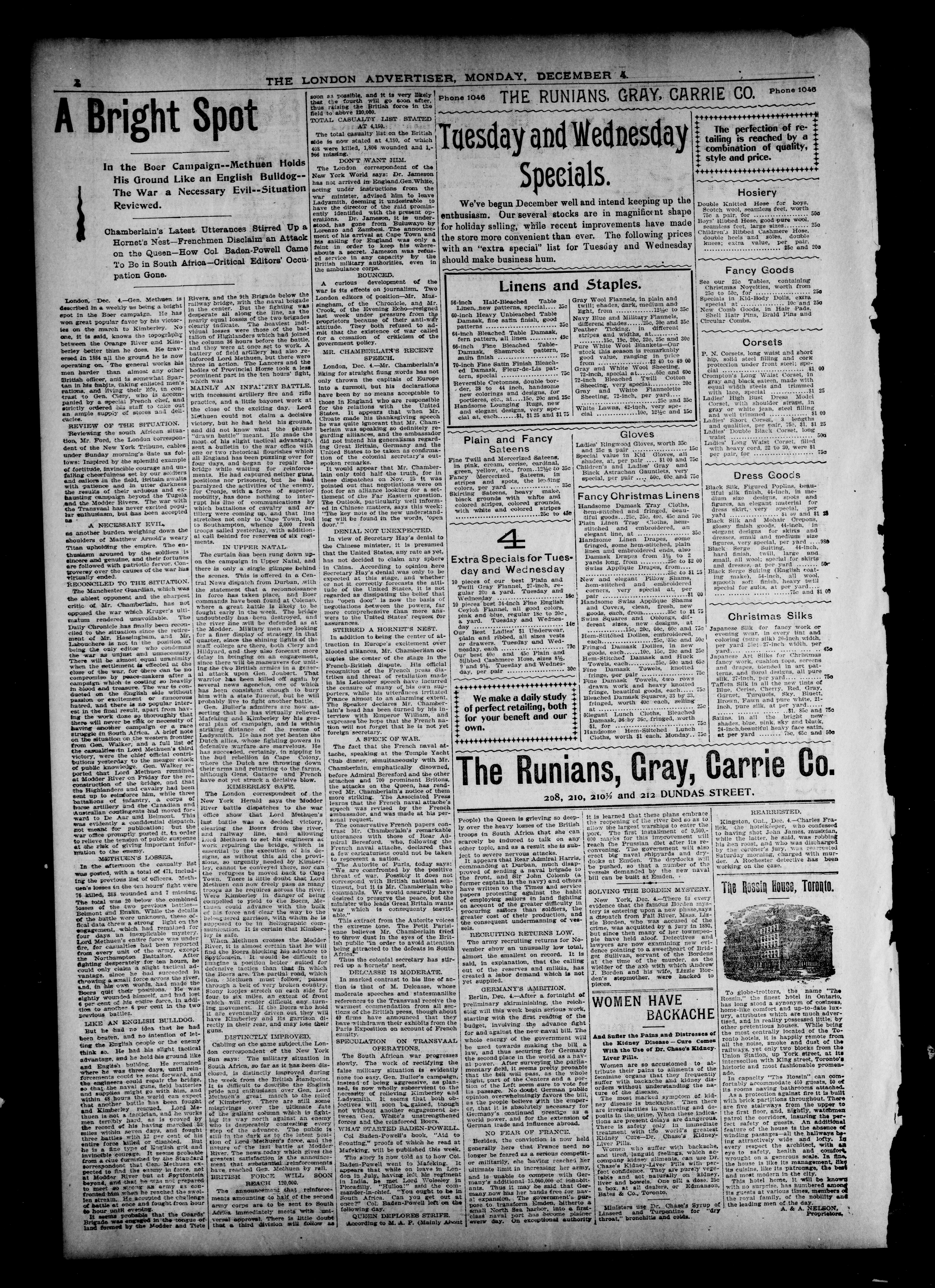London advertiser. : London Advertiser : Vol. XXXVI, No. 310 (December 4, 1899)