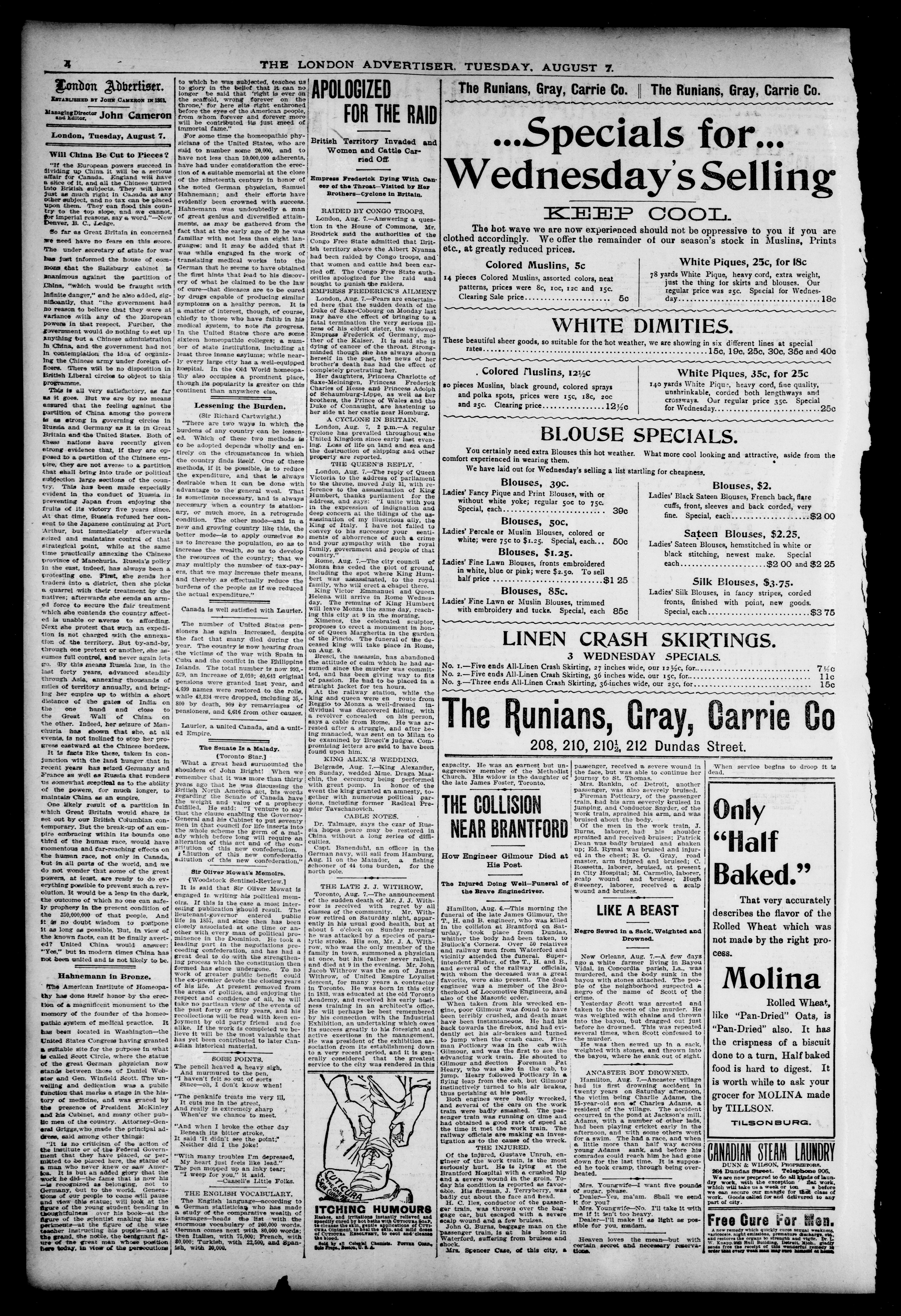 London advertiser. : London Advertiser : Vol. XXXVII, No. 218 (August 7, 1900)