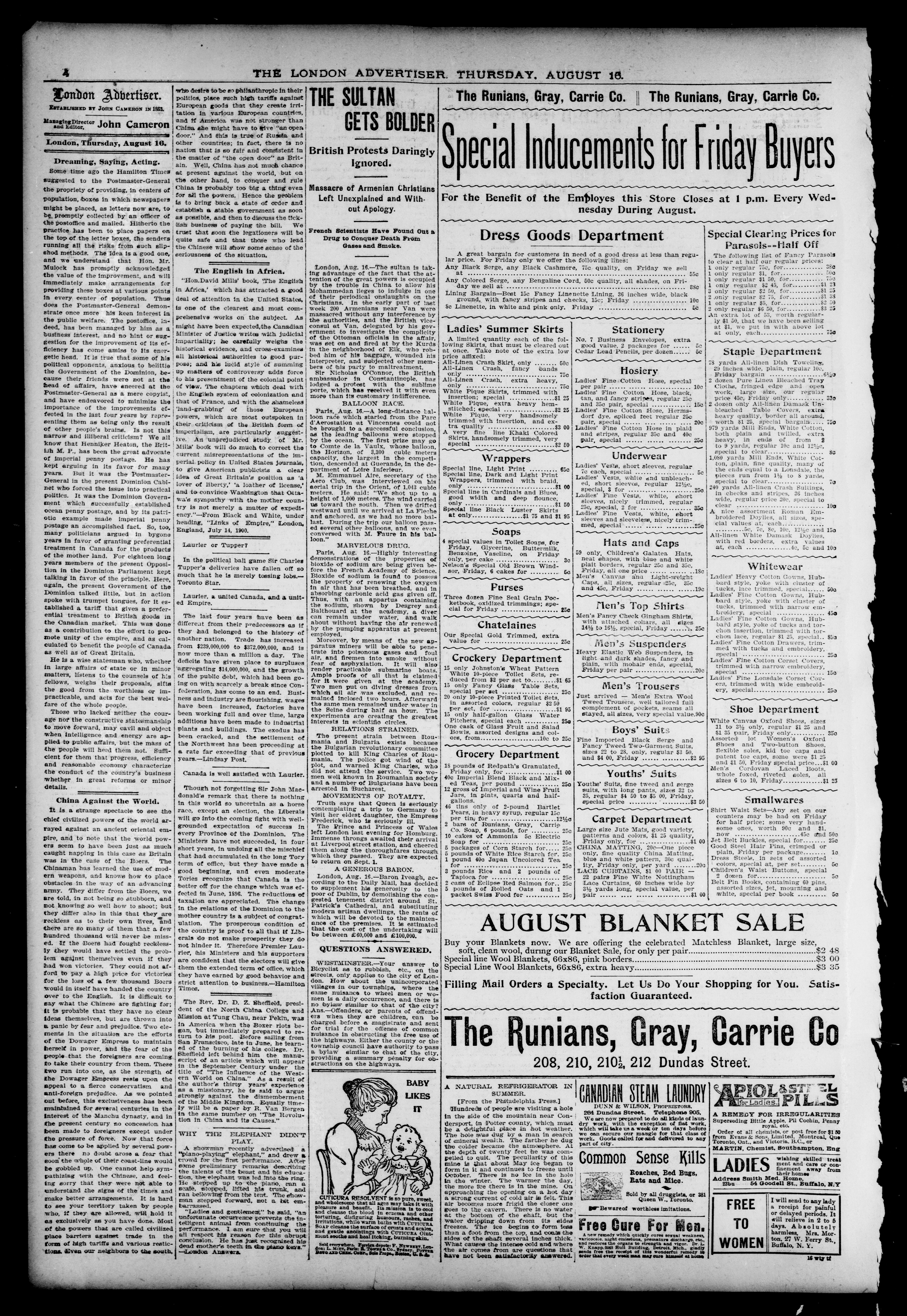 London advertiser. : London Advertiser : Vol. XXXVII, No. 226 (August 16, 1900)