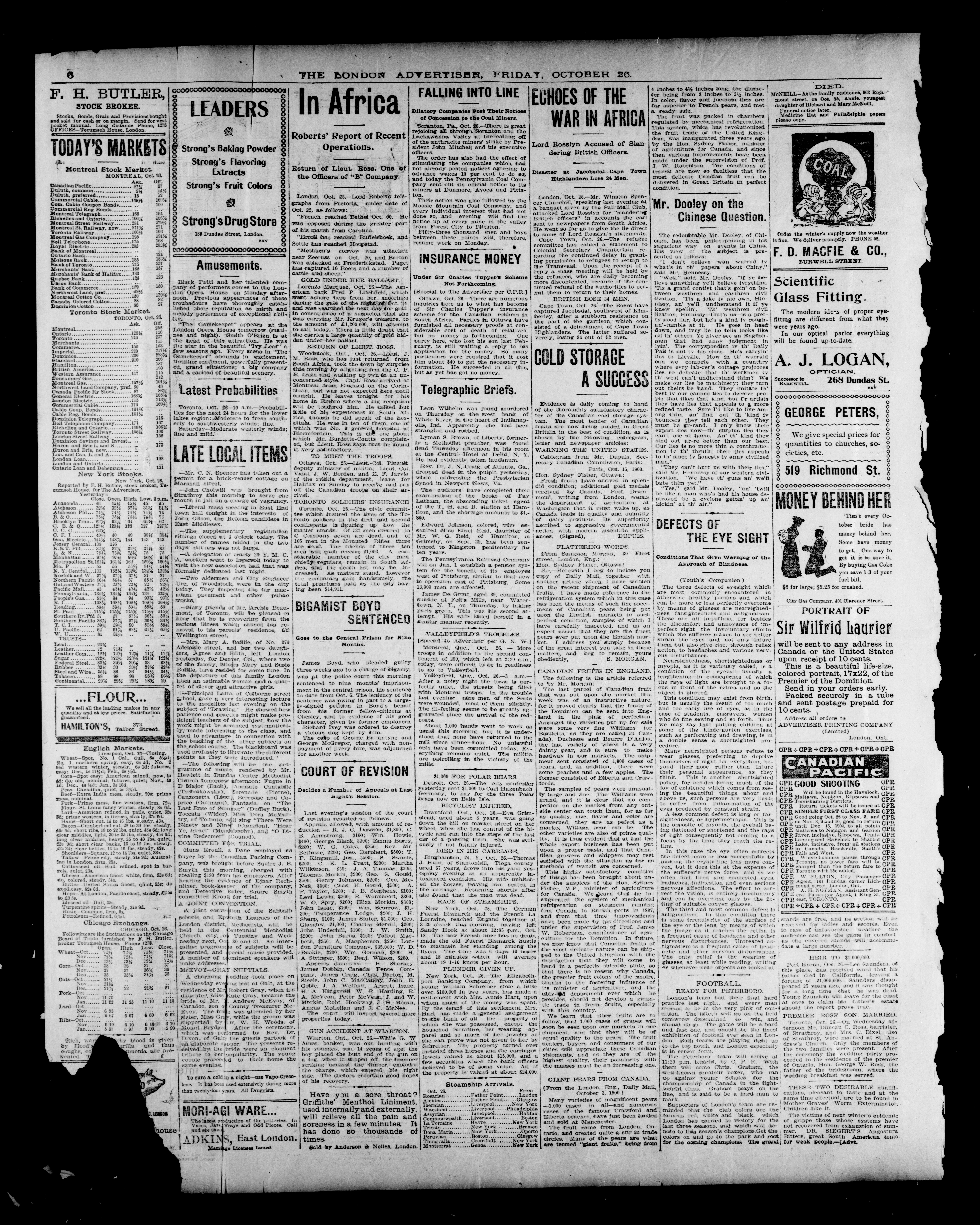 London advertiser. : London Advertiser : Vol. XXXVII, No. 287 (October 26, 1900)