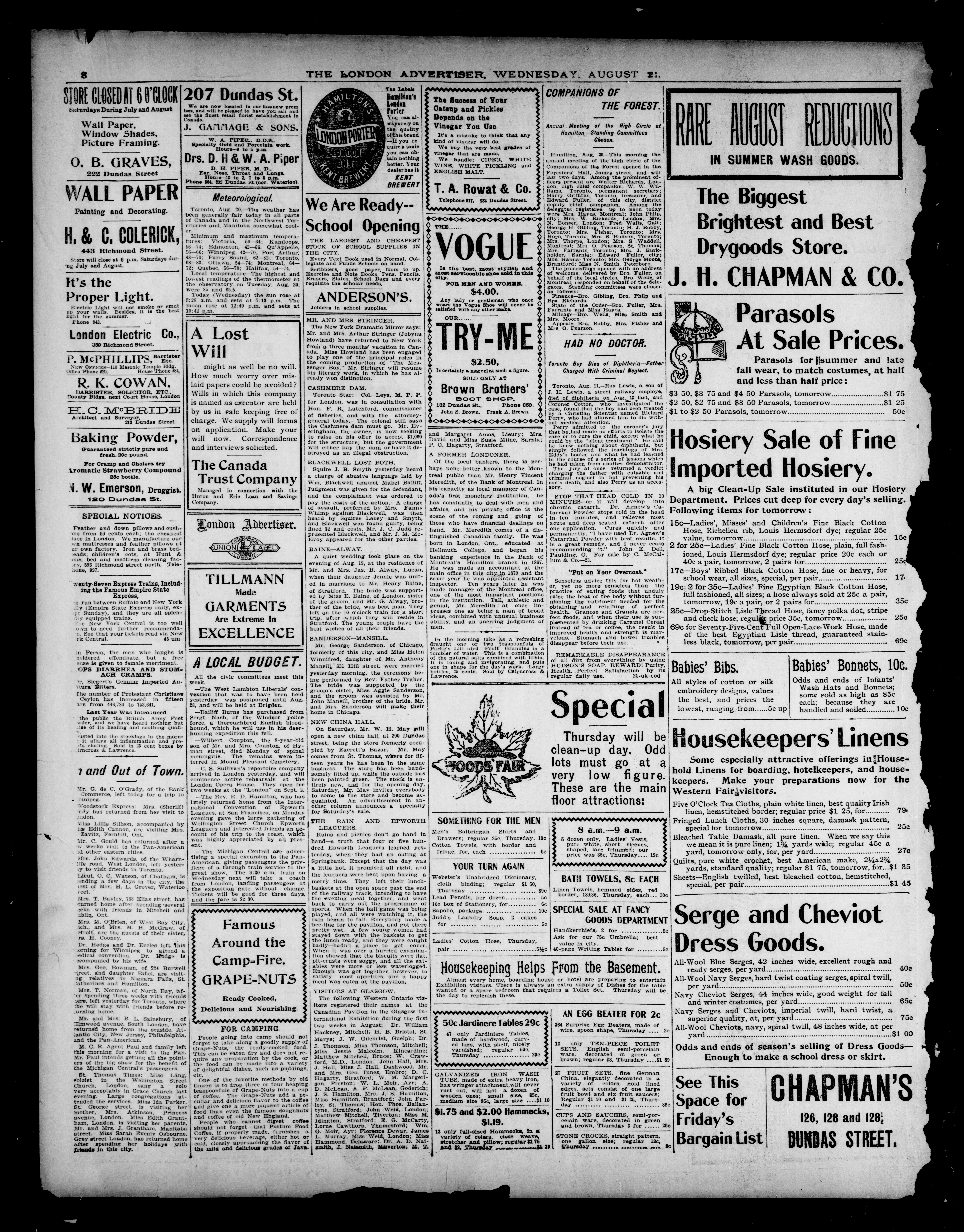 London advertiser. : London Advertiser : Vol. XXXIX, No. 258 (August 21, 1901)