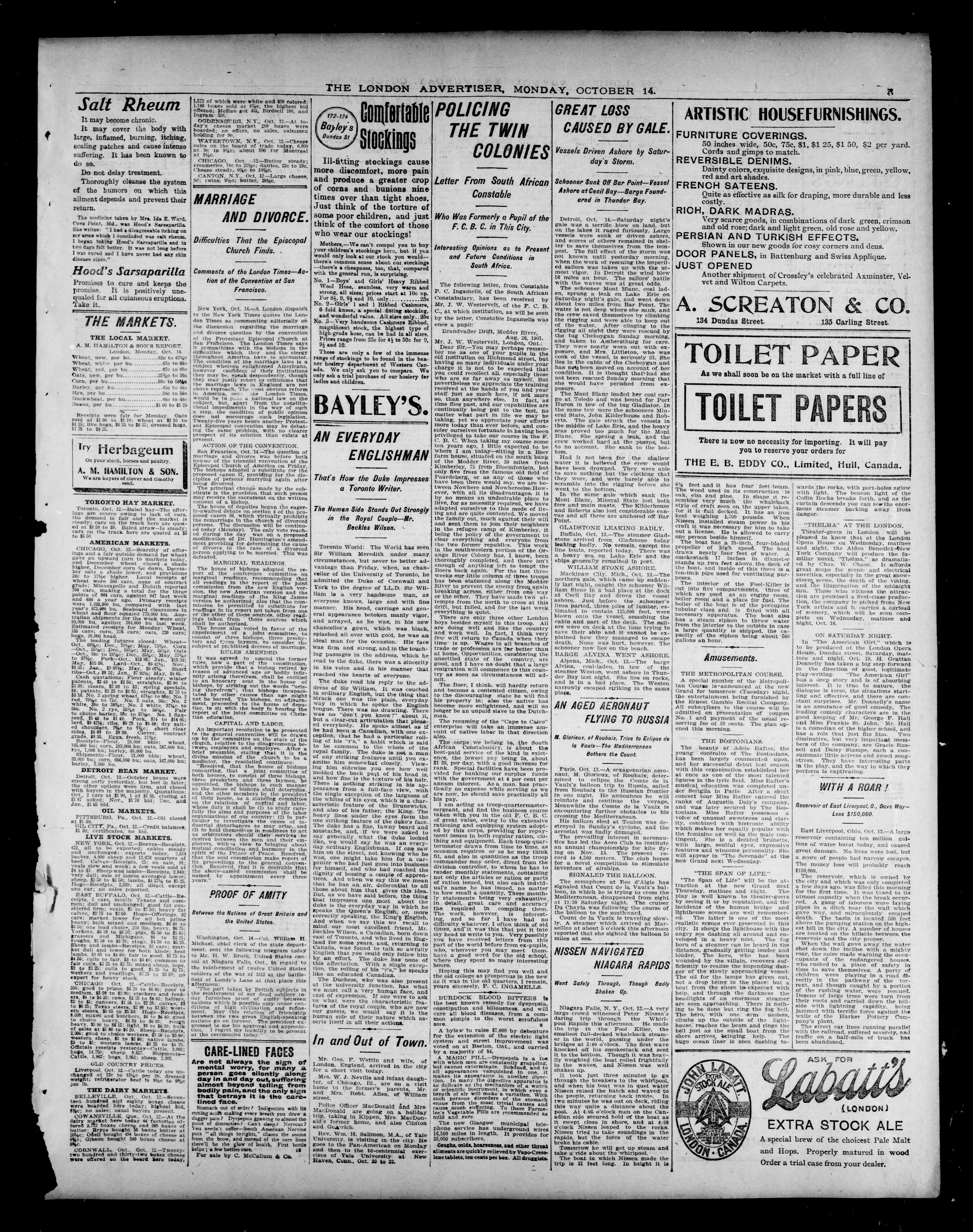 London advertiser. : London Advertiser : Vol. XXXIX, No. 304 (October 14, 1901)
