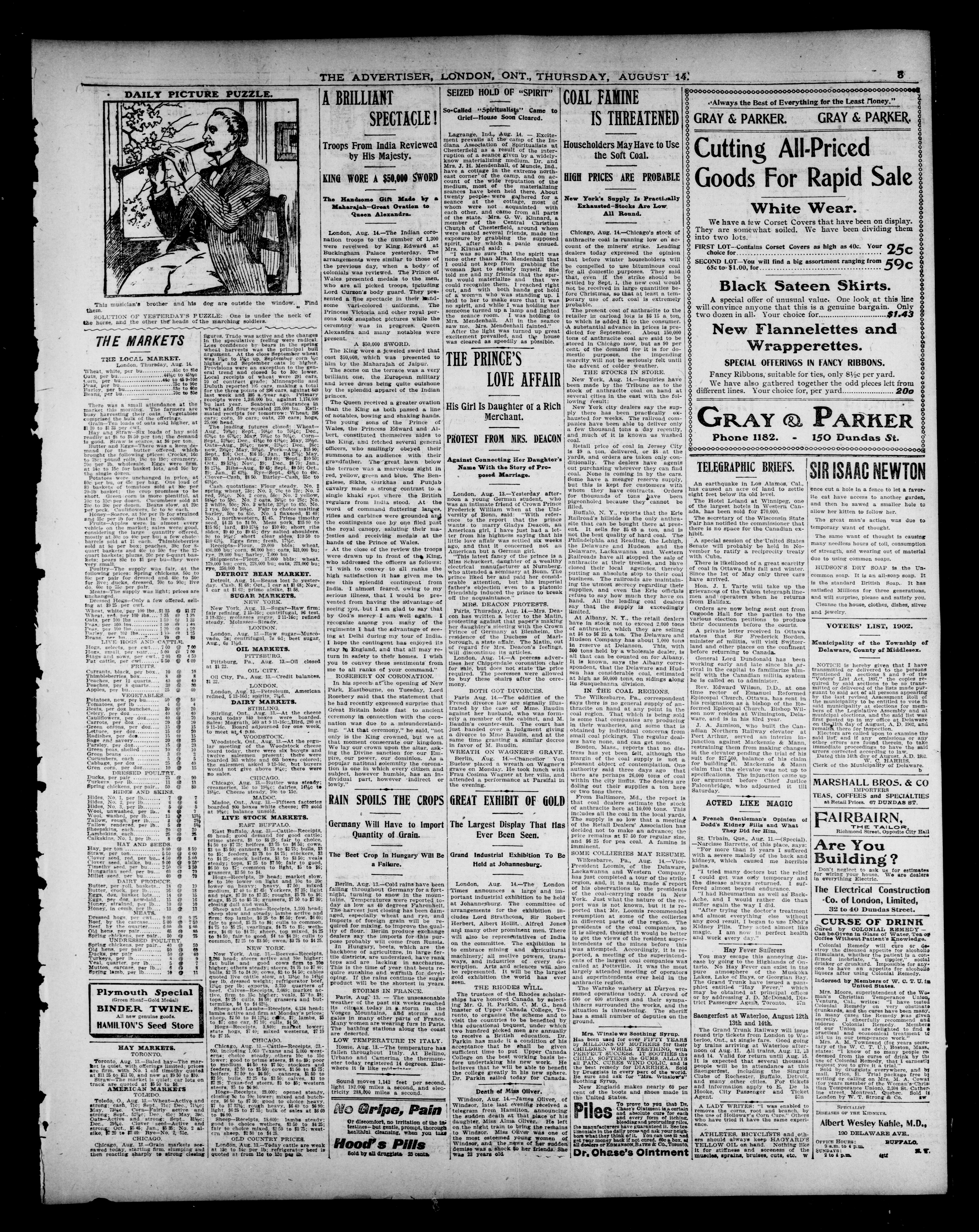 - London Advertiser : 40th Year, No. 271 (August 14, 1902)