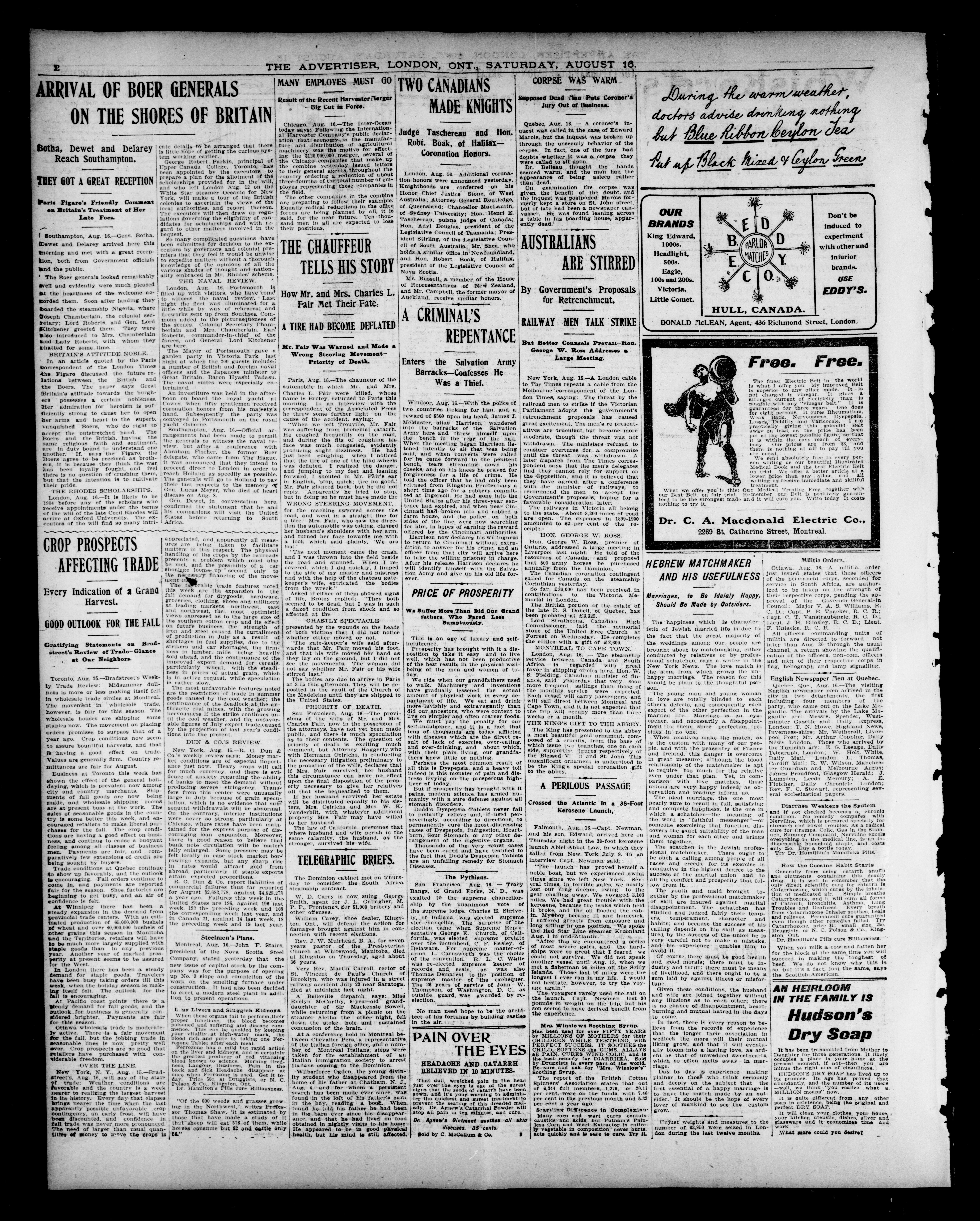 - London Advertiser : 40th Year, No. 273 (August 16, 1902)