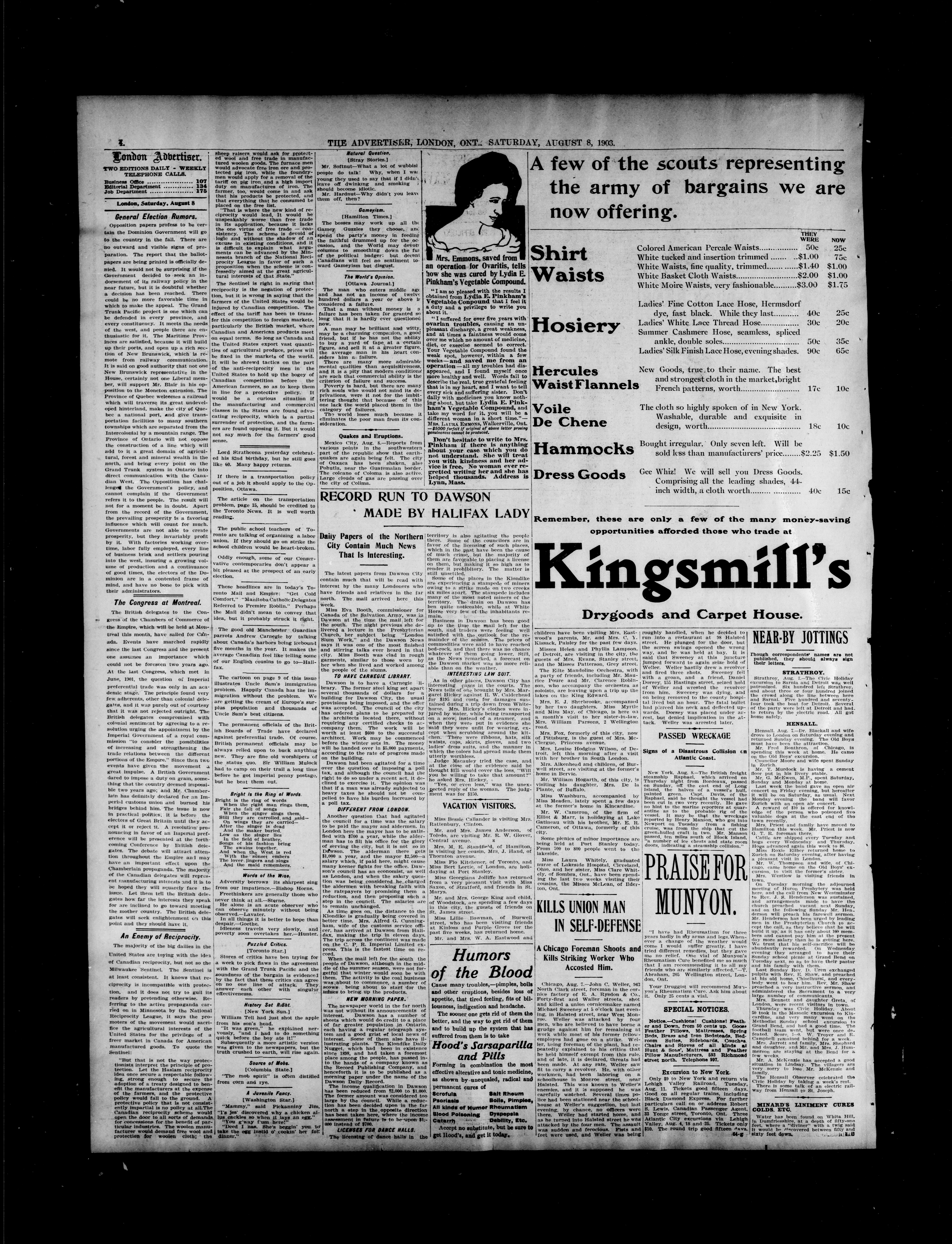London advertiser. : London Advertiser : 40th Year, No. 1969 (August 8, 1903)