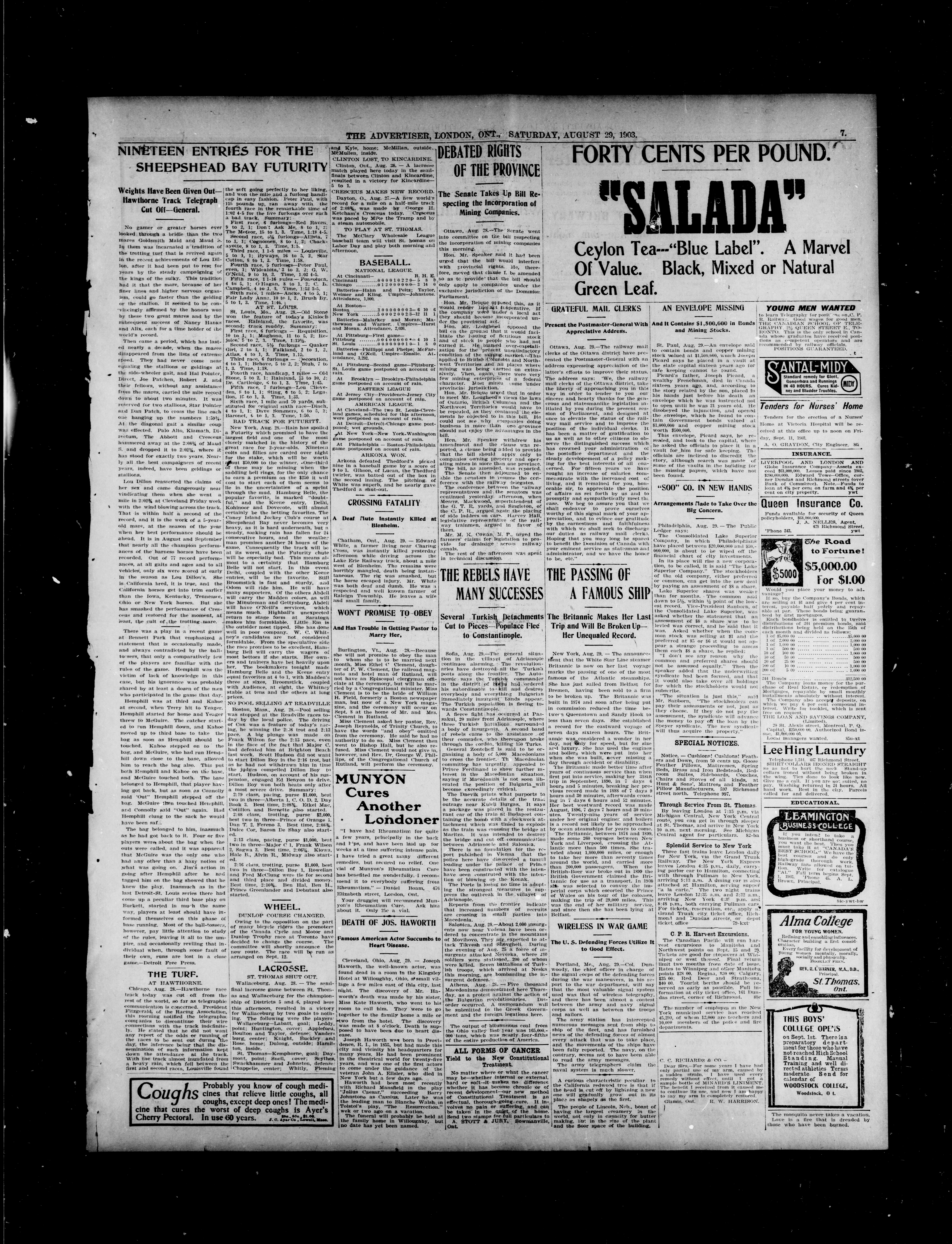 - London Advertiser : 40th Year, No. 1988 (August 29, 1903)