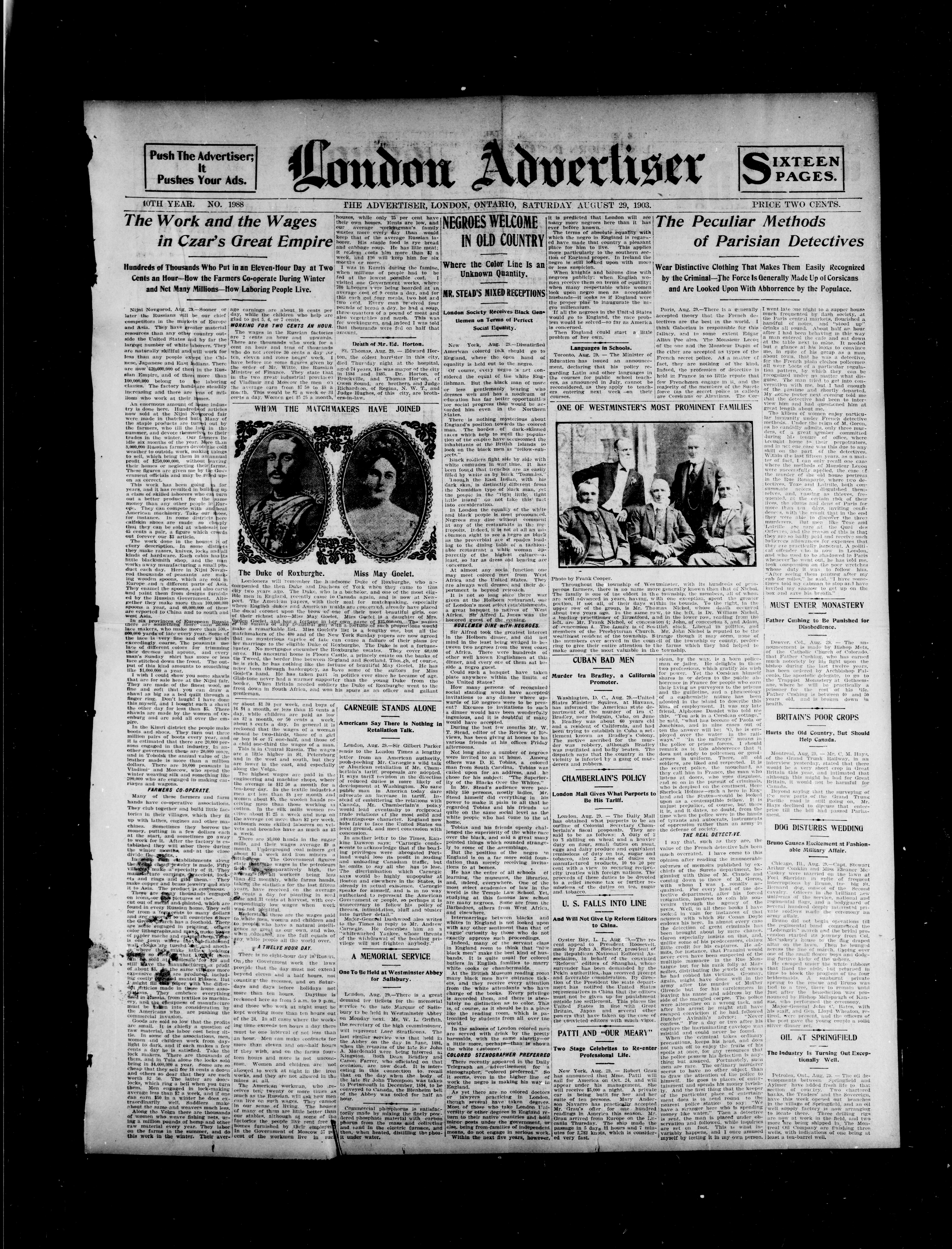 - London Advertiser : 40th Year, No. 1988 (August 29, 1903)