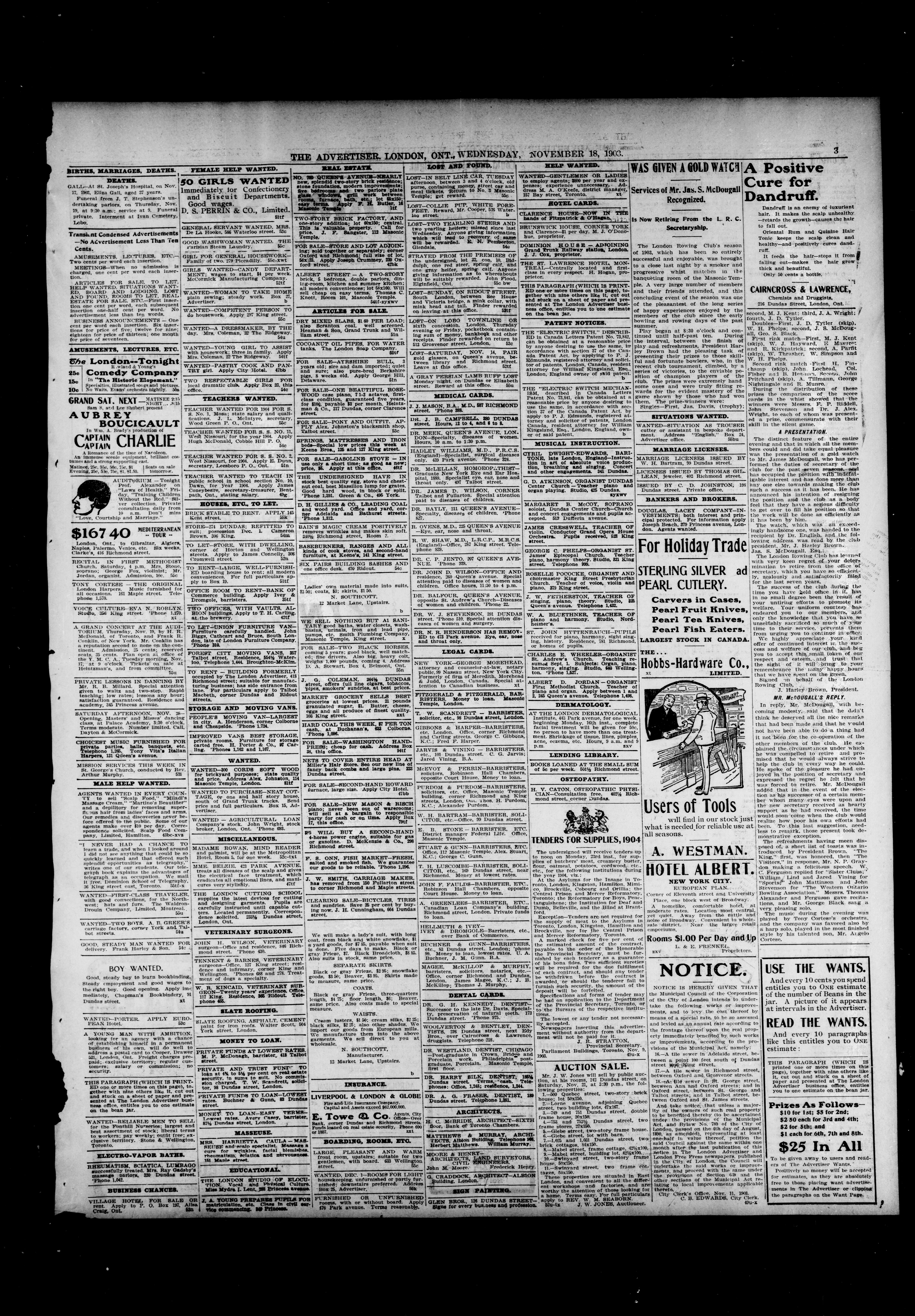 London Advertiser : 40th Year, No. 17055 (November 18, 1903)