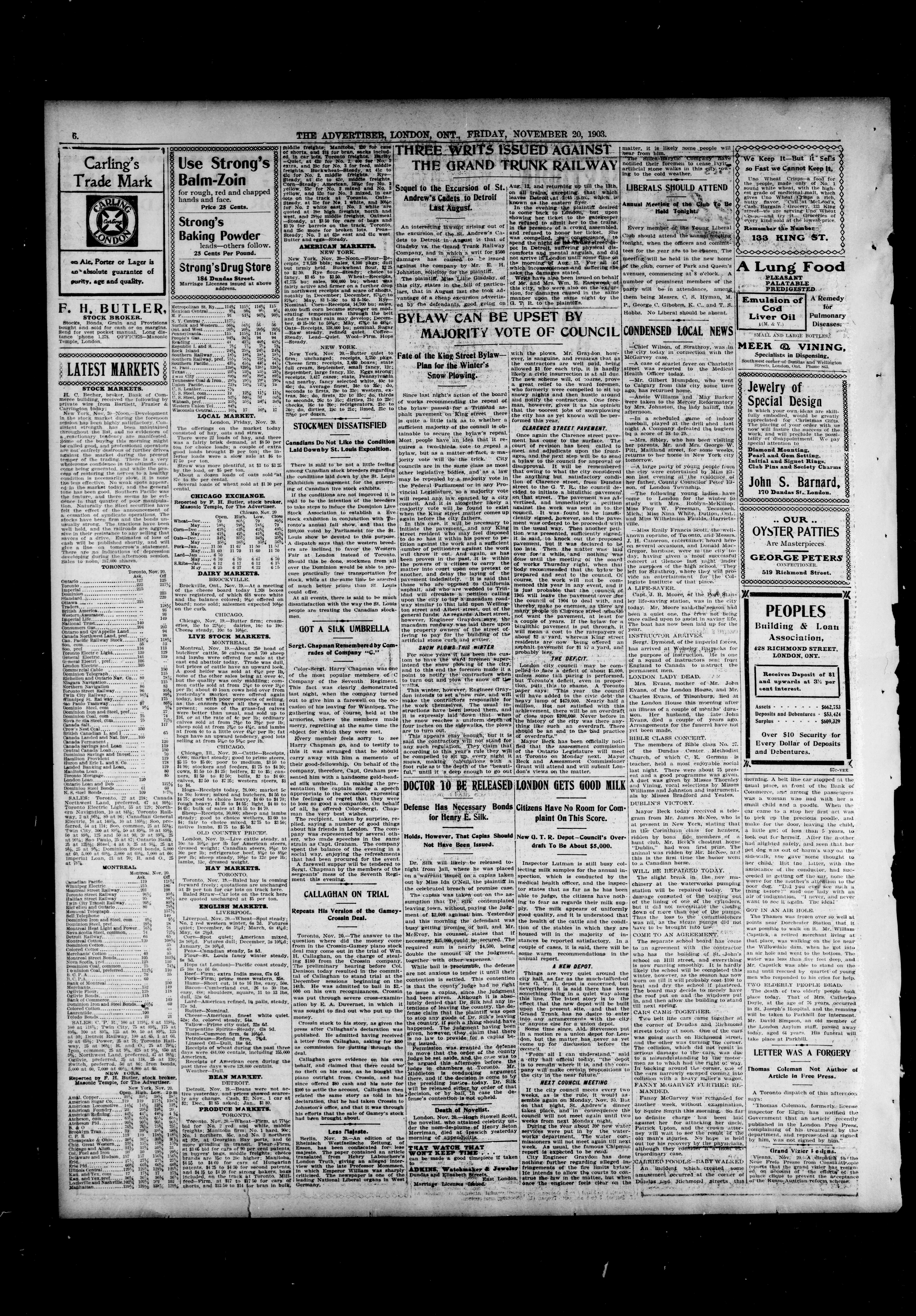 London advertiser. : London Advertiser : 40th Year, No. 17057 (November 20, 1903)