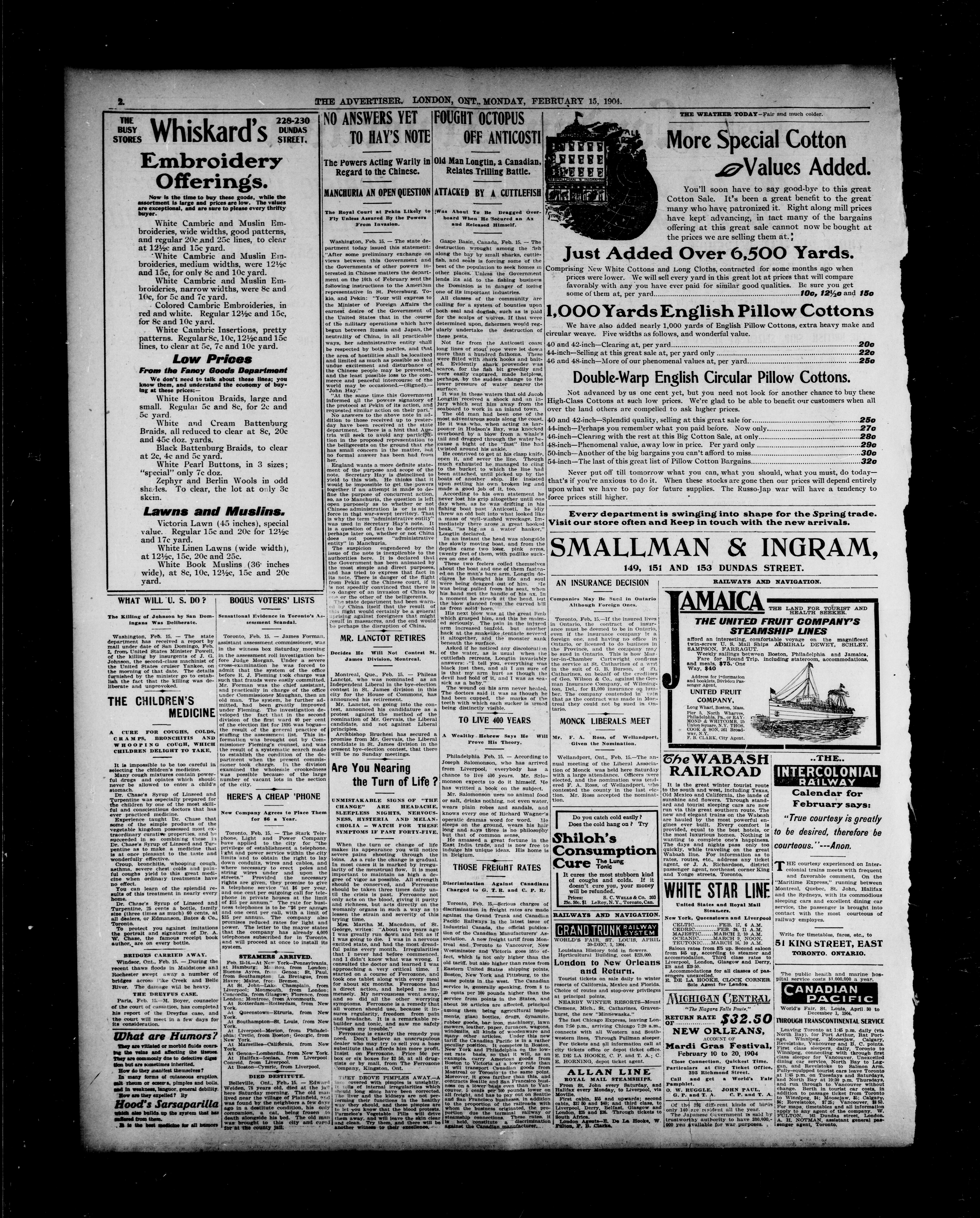 London advertiser. : London Advertiser : 40th Year, No. 17129 (February 15, 1904)