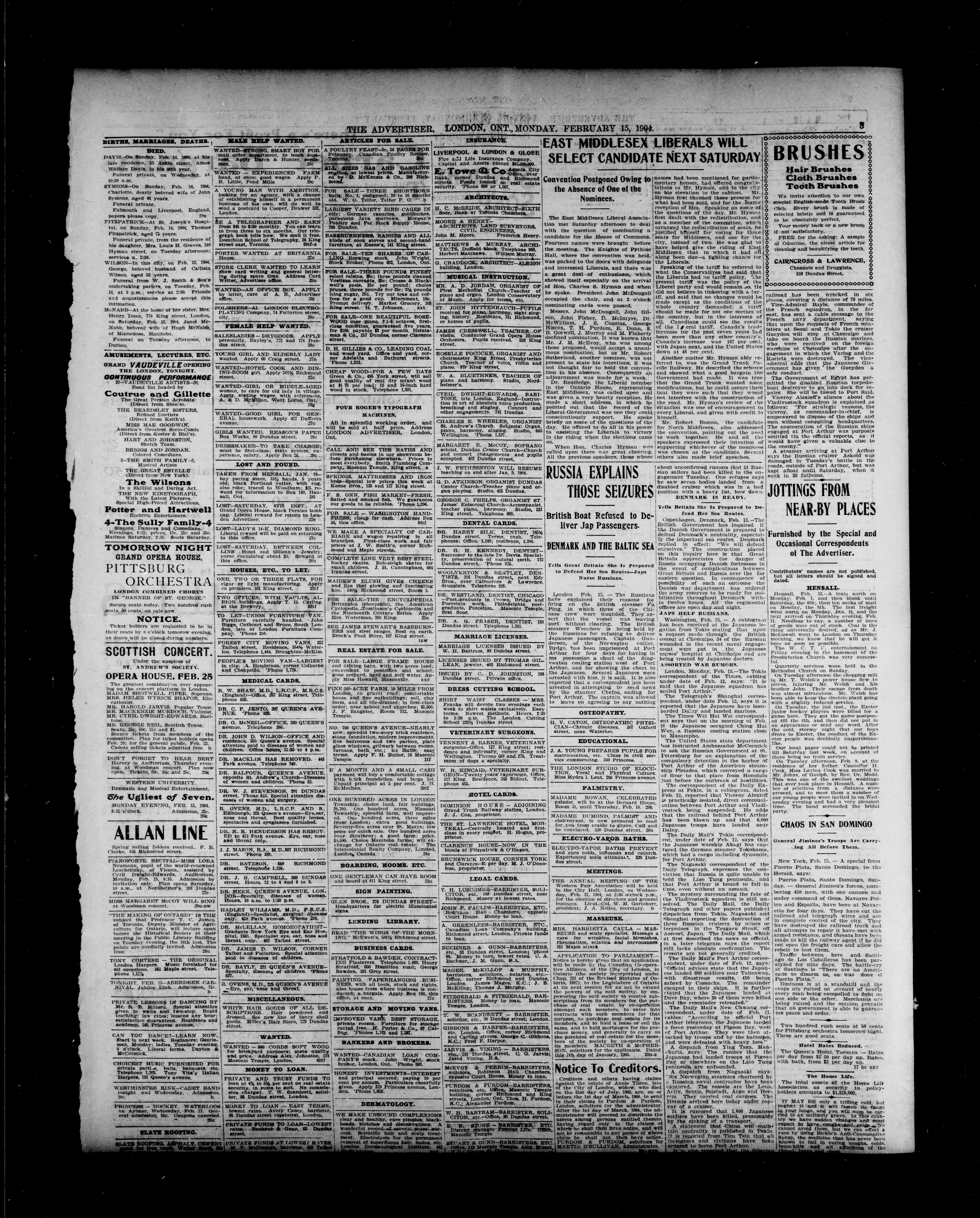 London advertiser. : London Advertiser : 40th Year, No. 17129 (February 15, 1904)