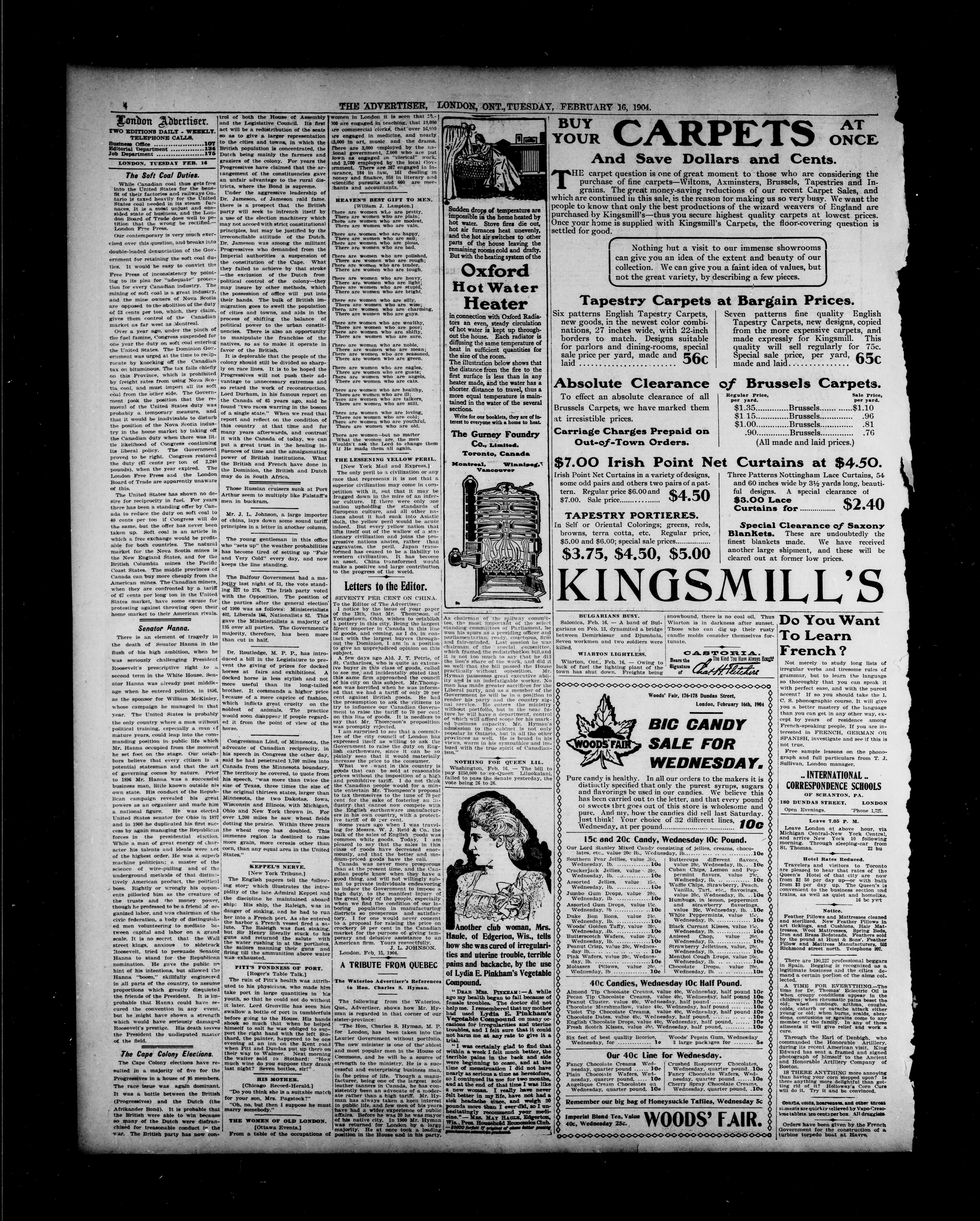 London advertiser. : London Advertiser : 40th Year, No. 17130 (February 16, 1904)