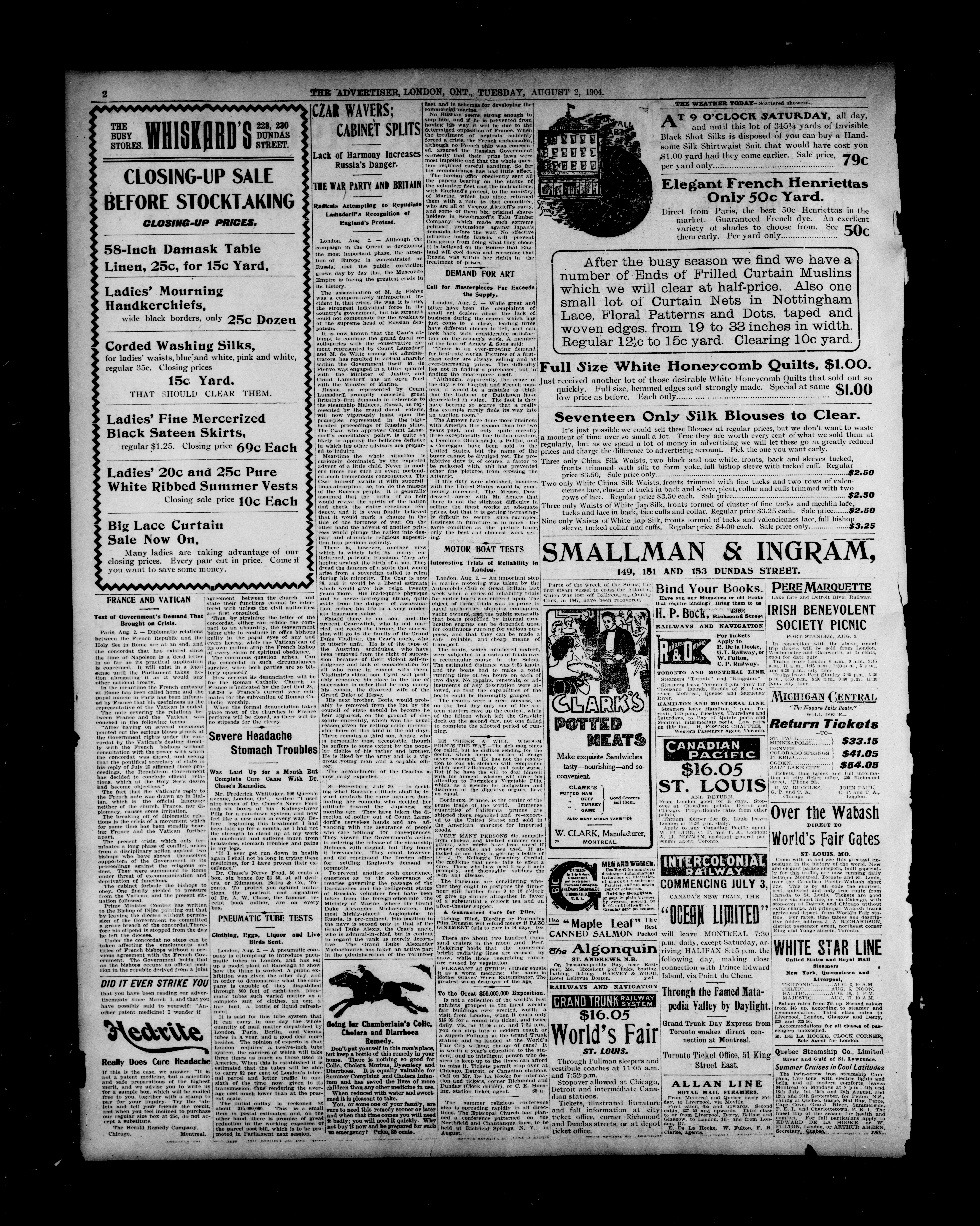 London Advertiser : 40th Year, No. 17270 (August 2, 1904)
