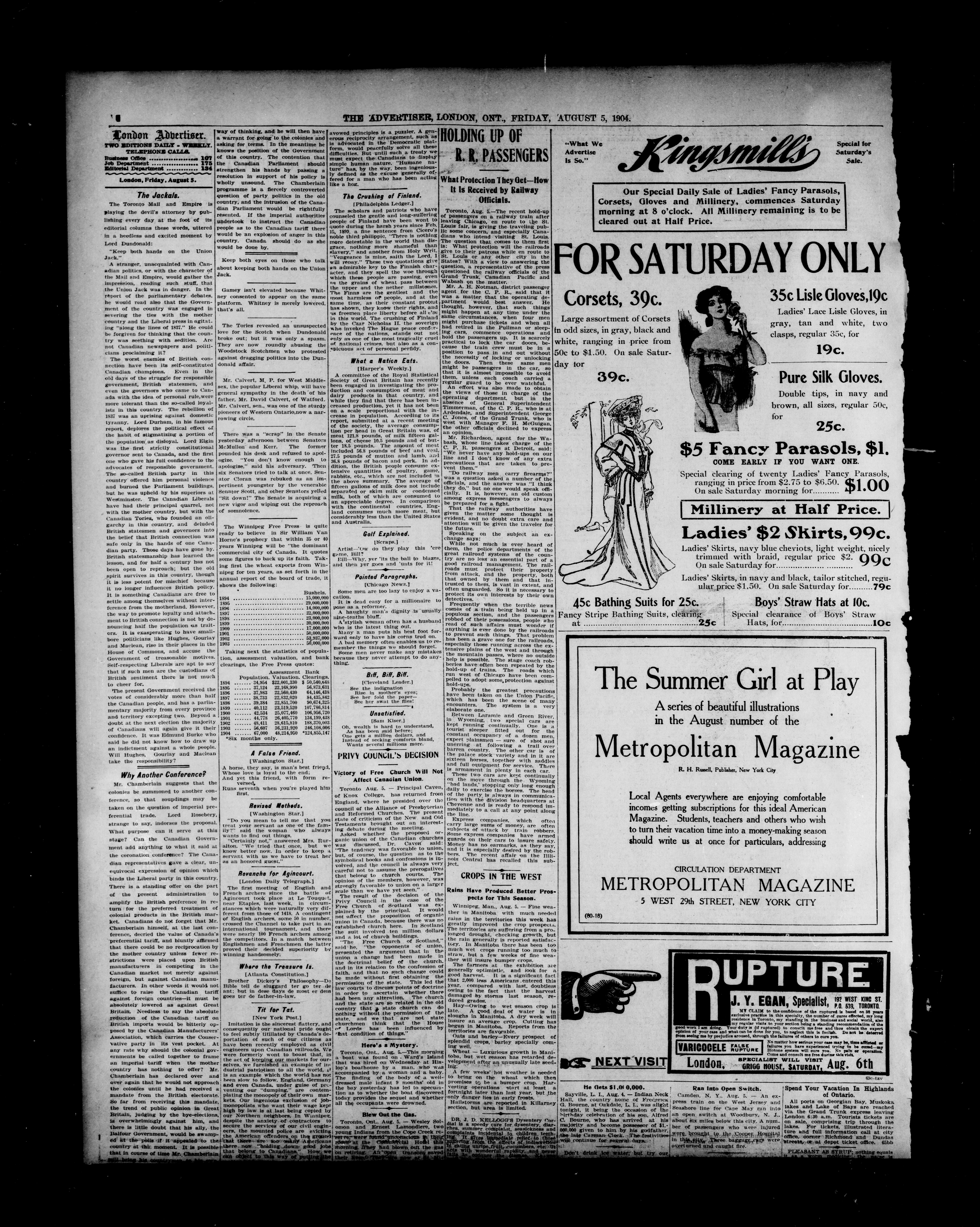 - London Advertiser : 40th Year, No. 17273 (August 5, 1904)