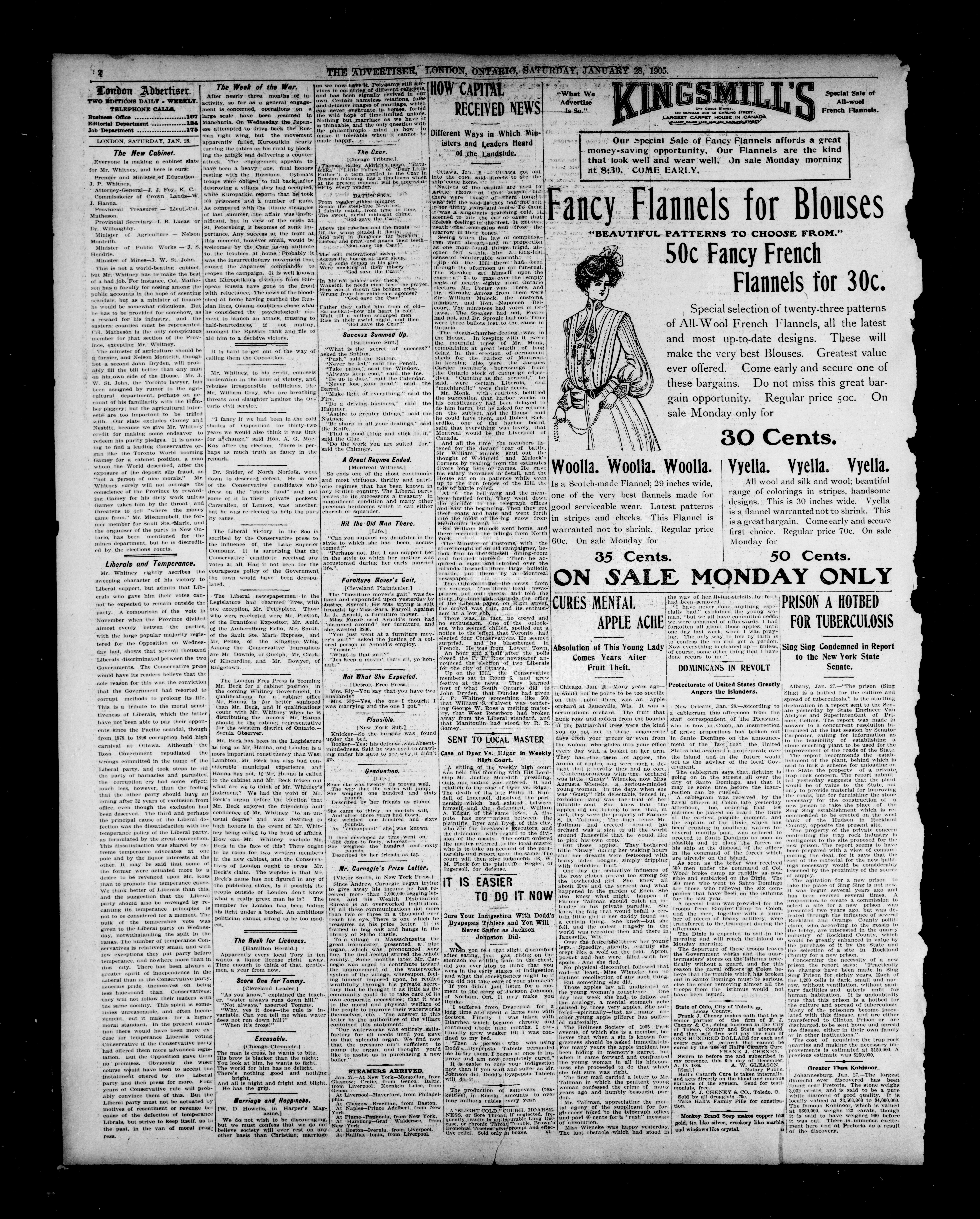 London Advertiser : 42nd Year, No. 17423 (January 28, 1905)