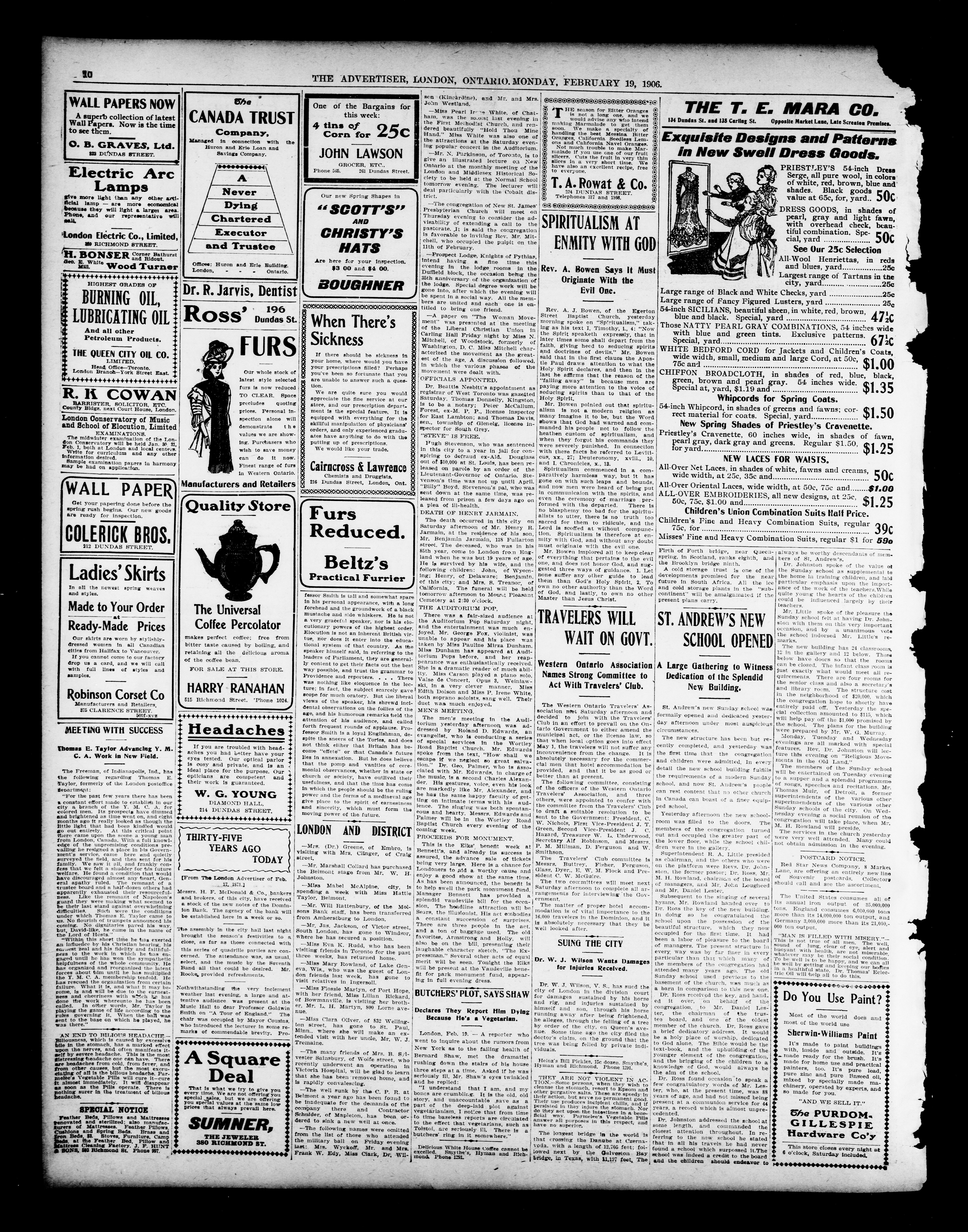 London advertiser. : London Advertiser : 42nd year, No. 17754 (February 19, 1906)