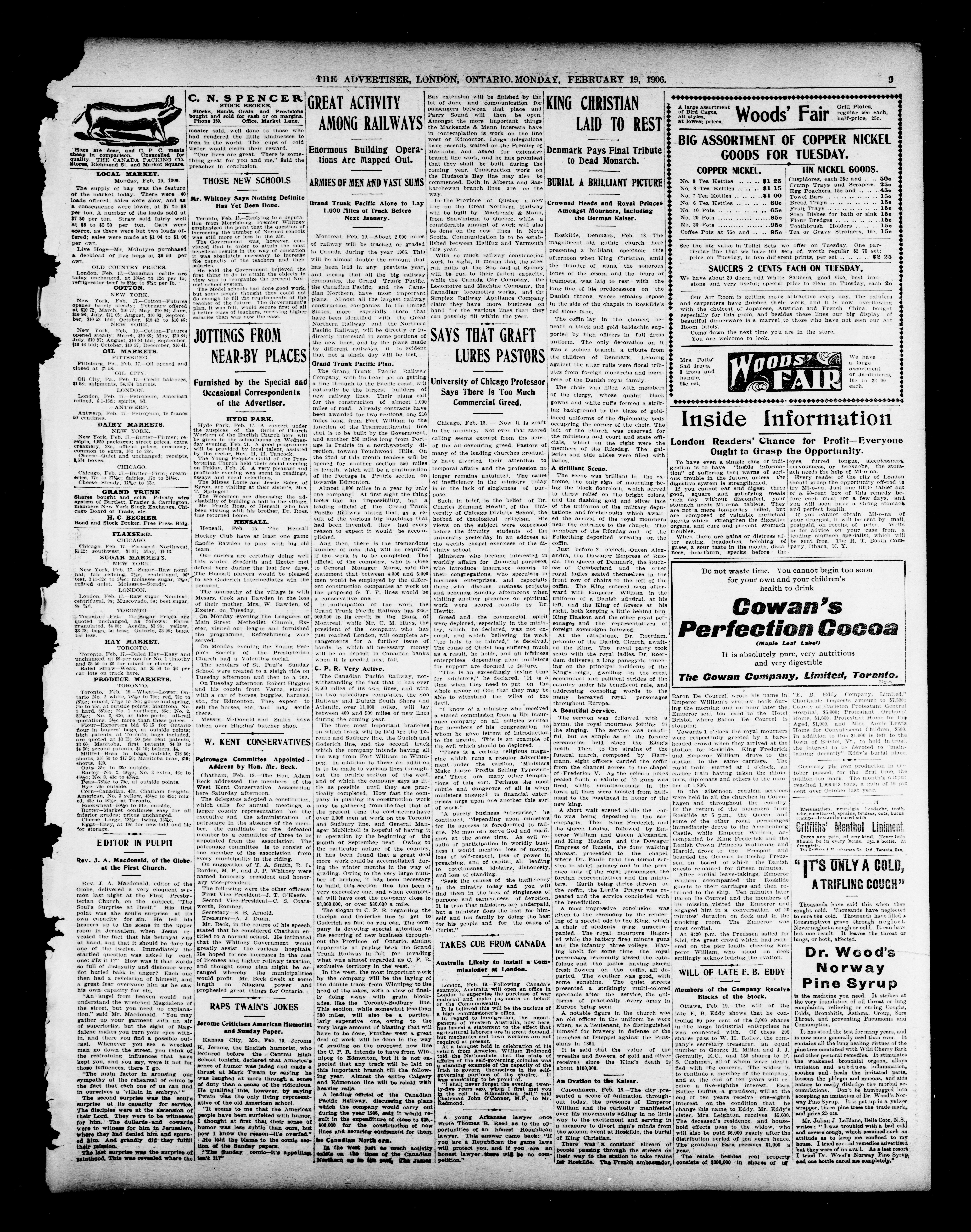 London advertiser. : London Advertiser : 42nd year, No. 17754 (February 19, 1906)