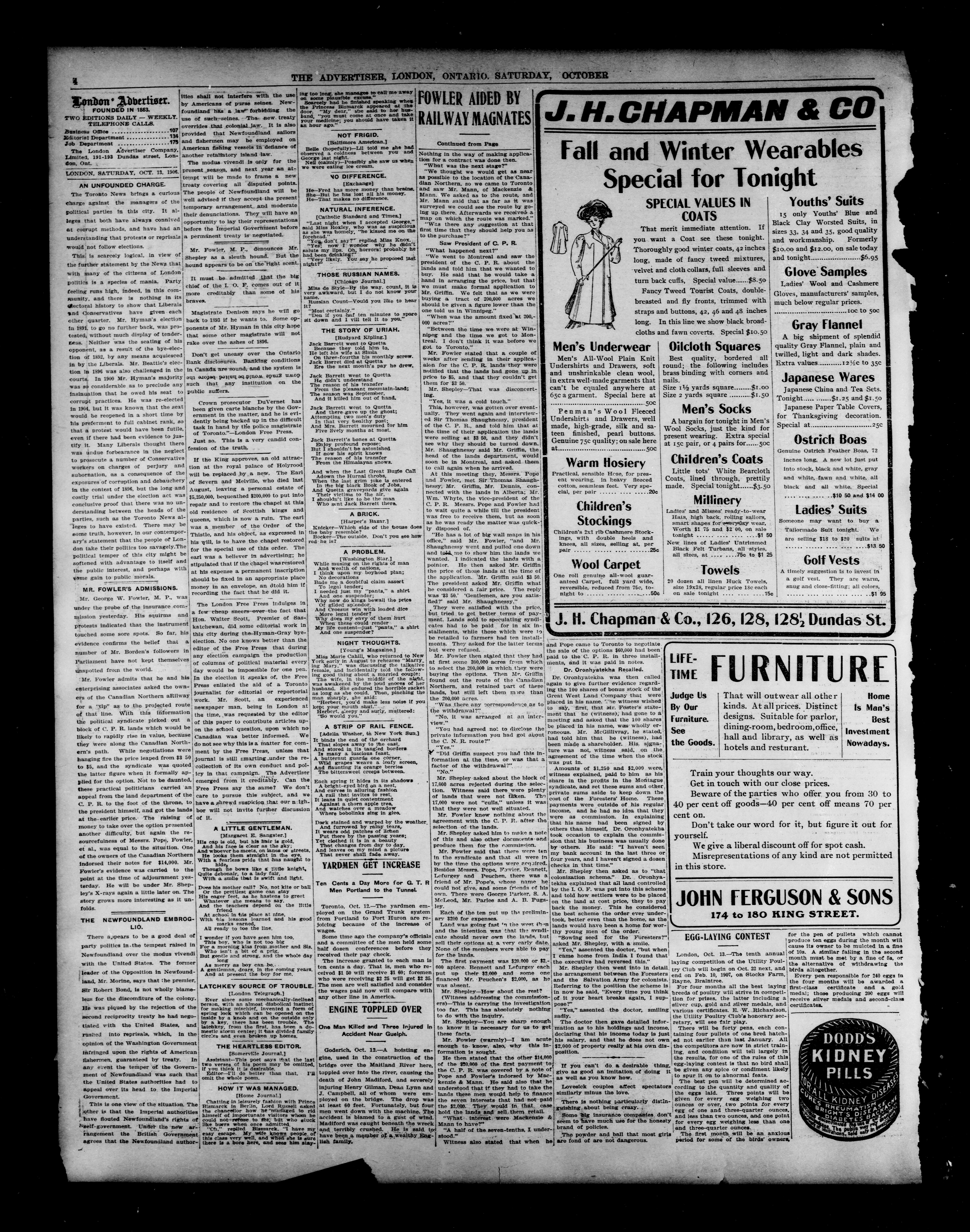 London advertiser. : London Advertiser : 43rd year, No. 17957 (October 13, 1906)