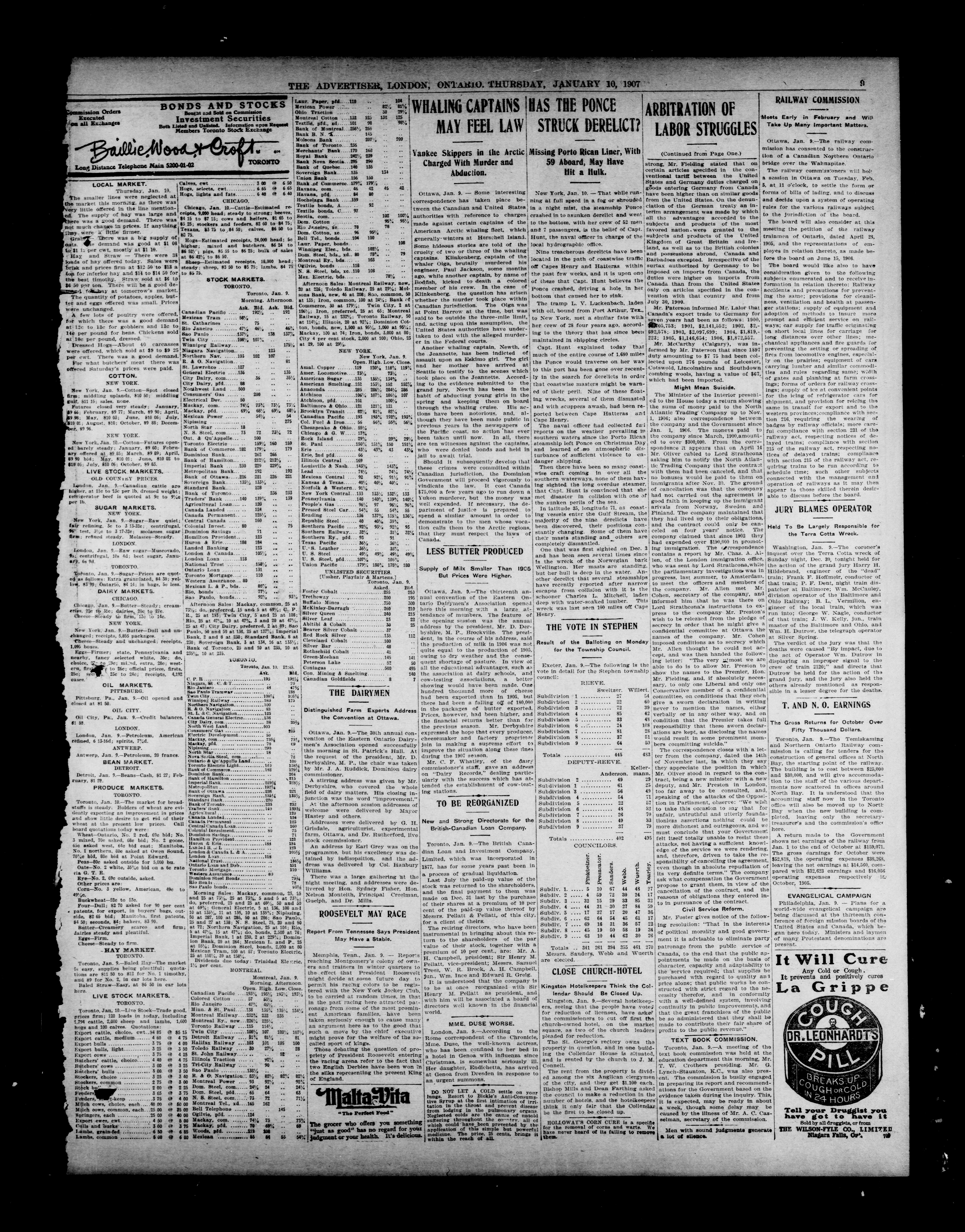London advertiser. : London Advertiser : 43rd year, No. 18033 (January 10, 1907)