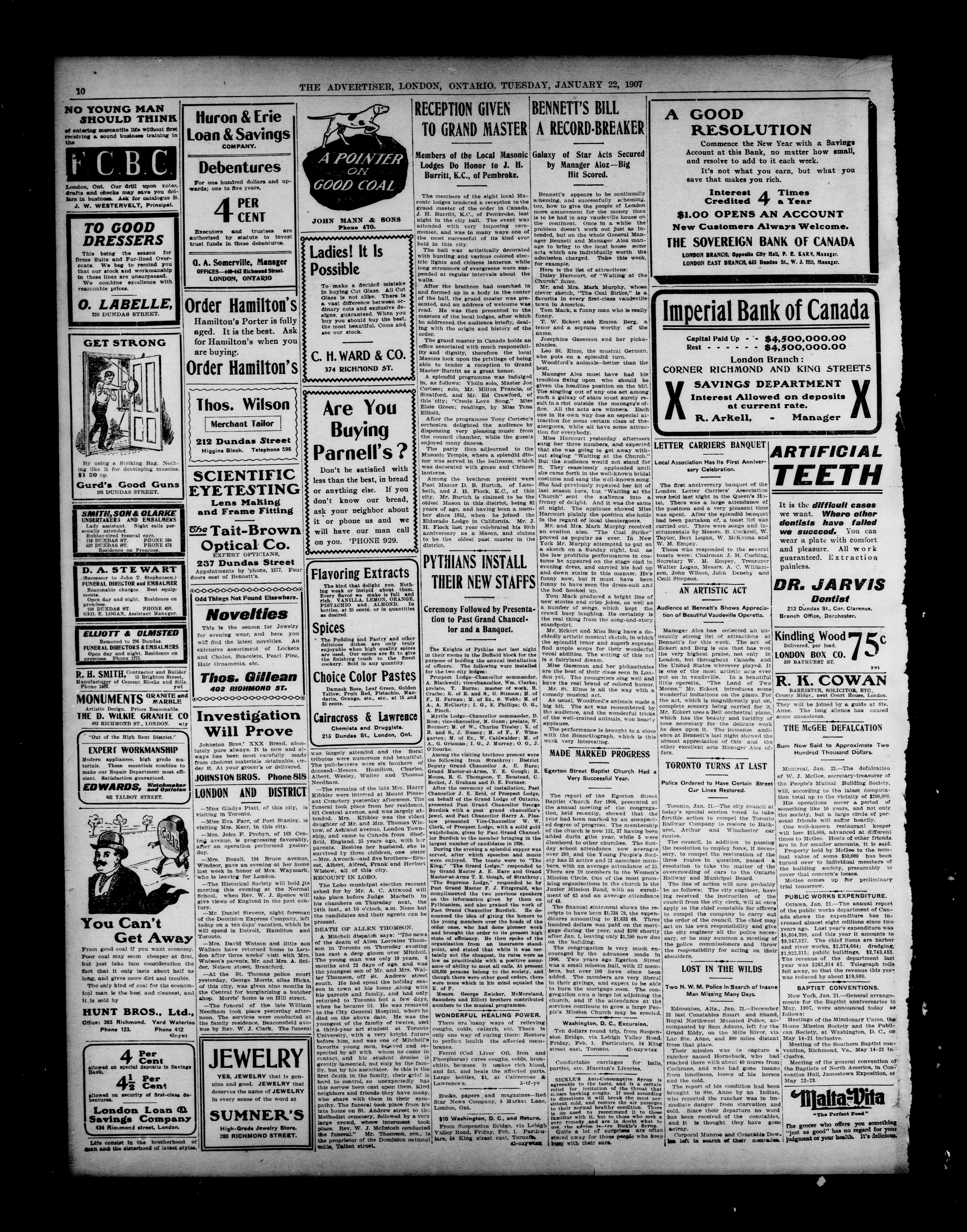 London advertiser. : London Advertiser : 43rd year, No. 18043 (January 22, 1907)