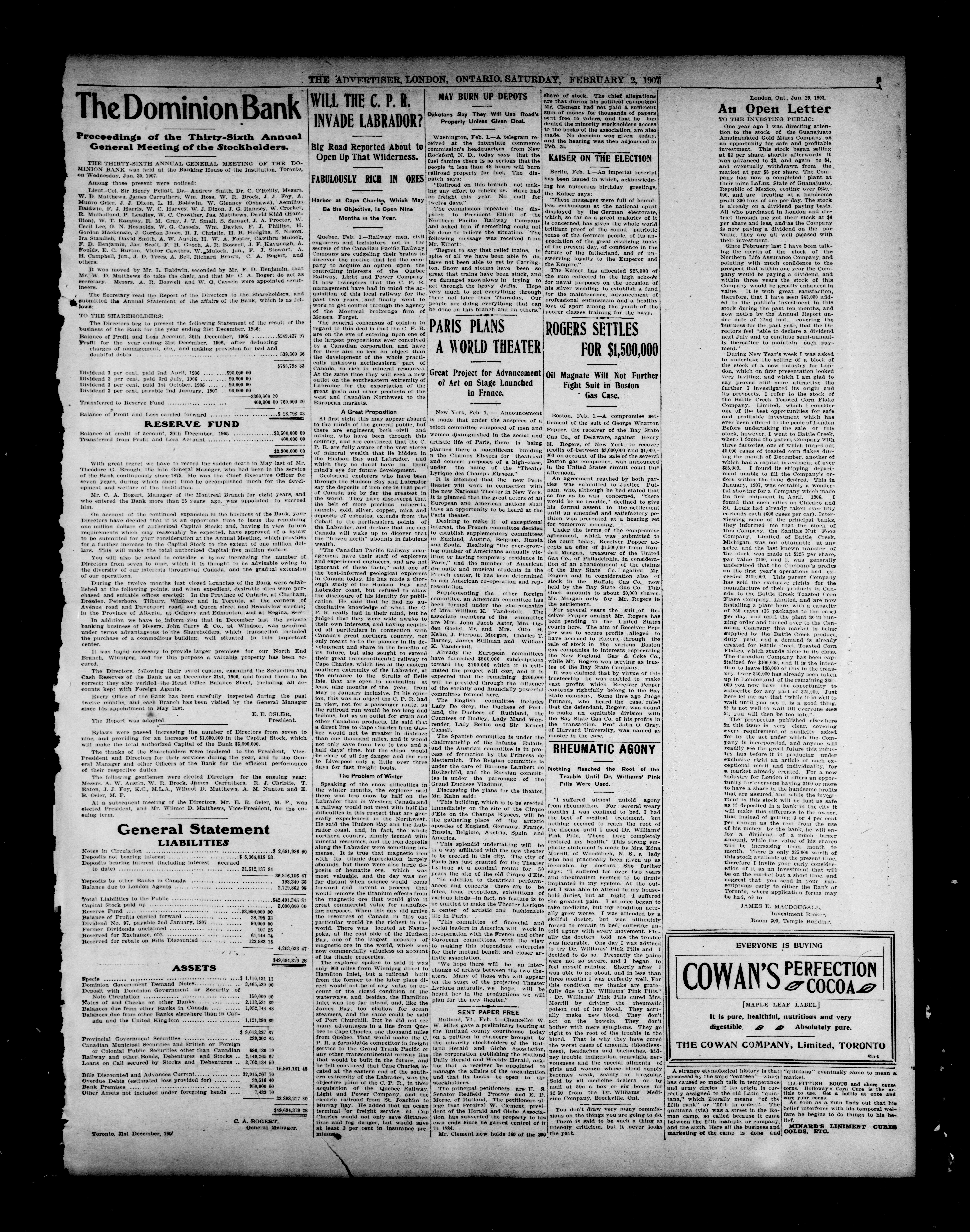 - London Advertiser : 43rd year, No. 18053 (February 2, 1907)