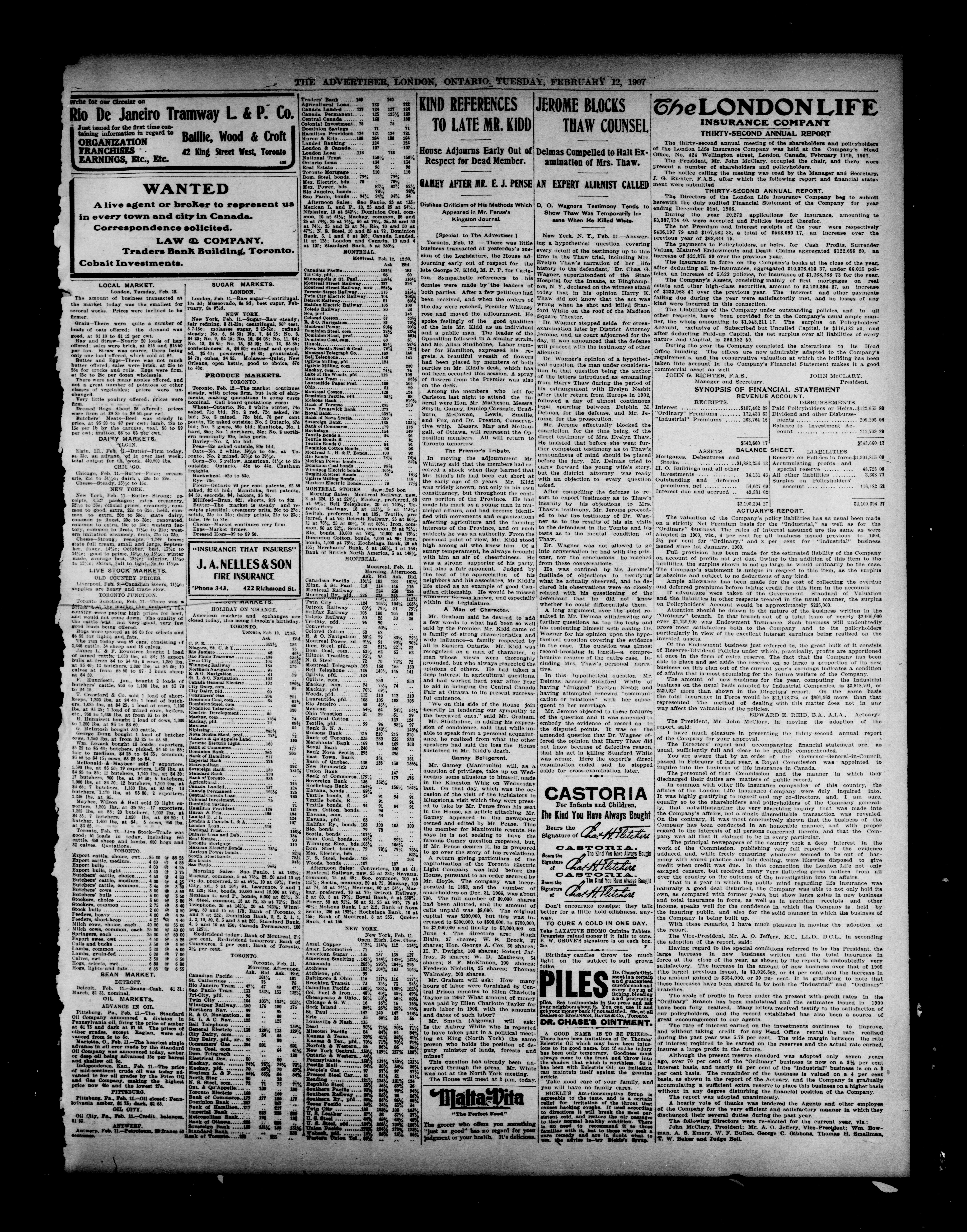 - London Advertiser : 43rd year, No. 18061 (February 12, 1907)