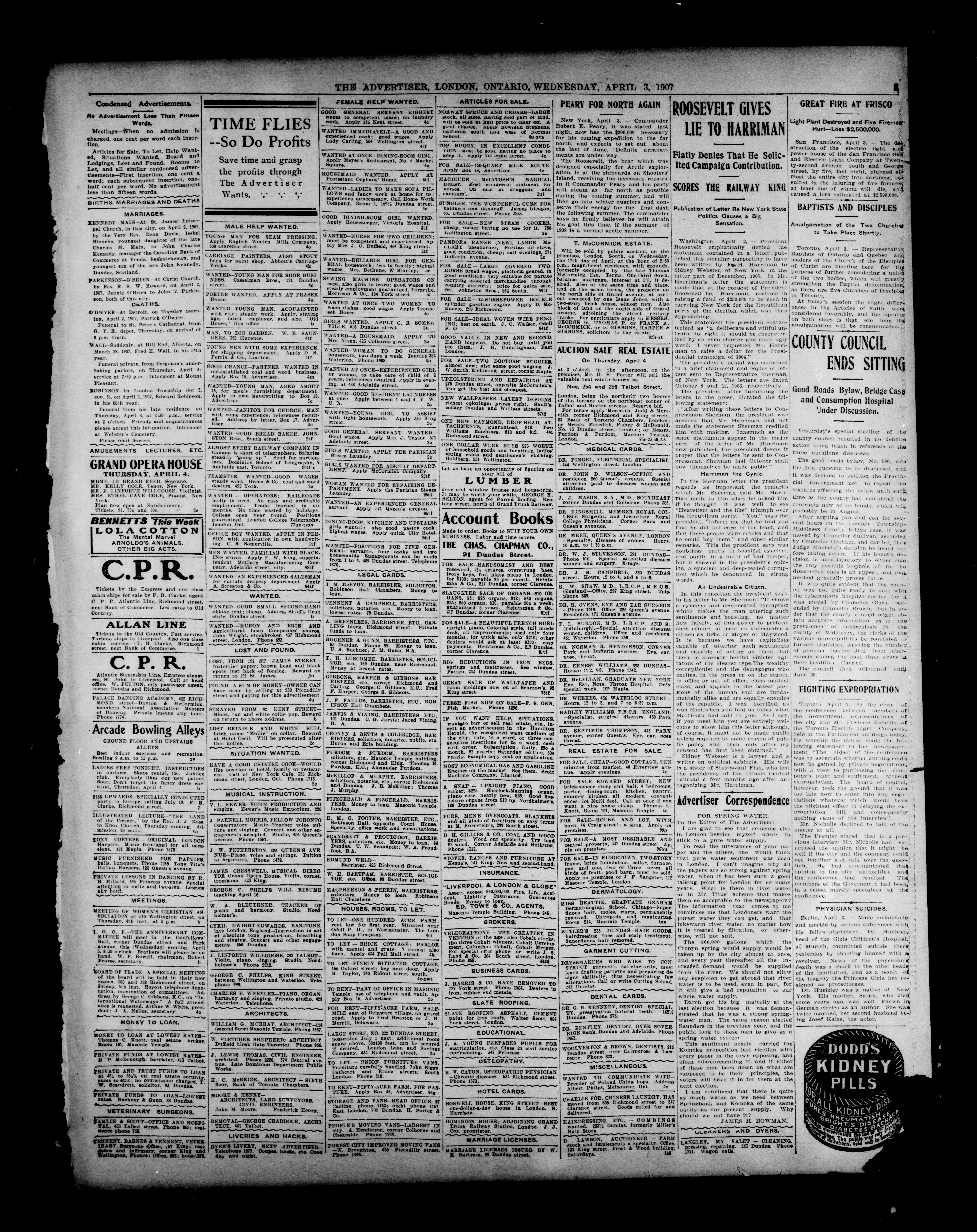 London advertiser. : London Advertiser : 43rd year, No. 19004 (April 3, 1907)