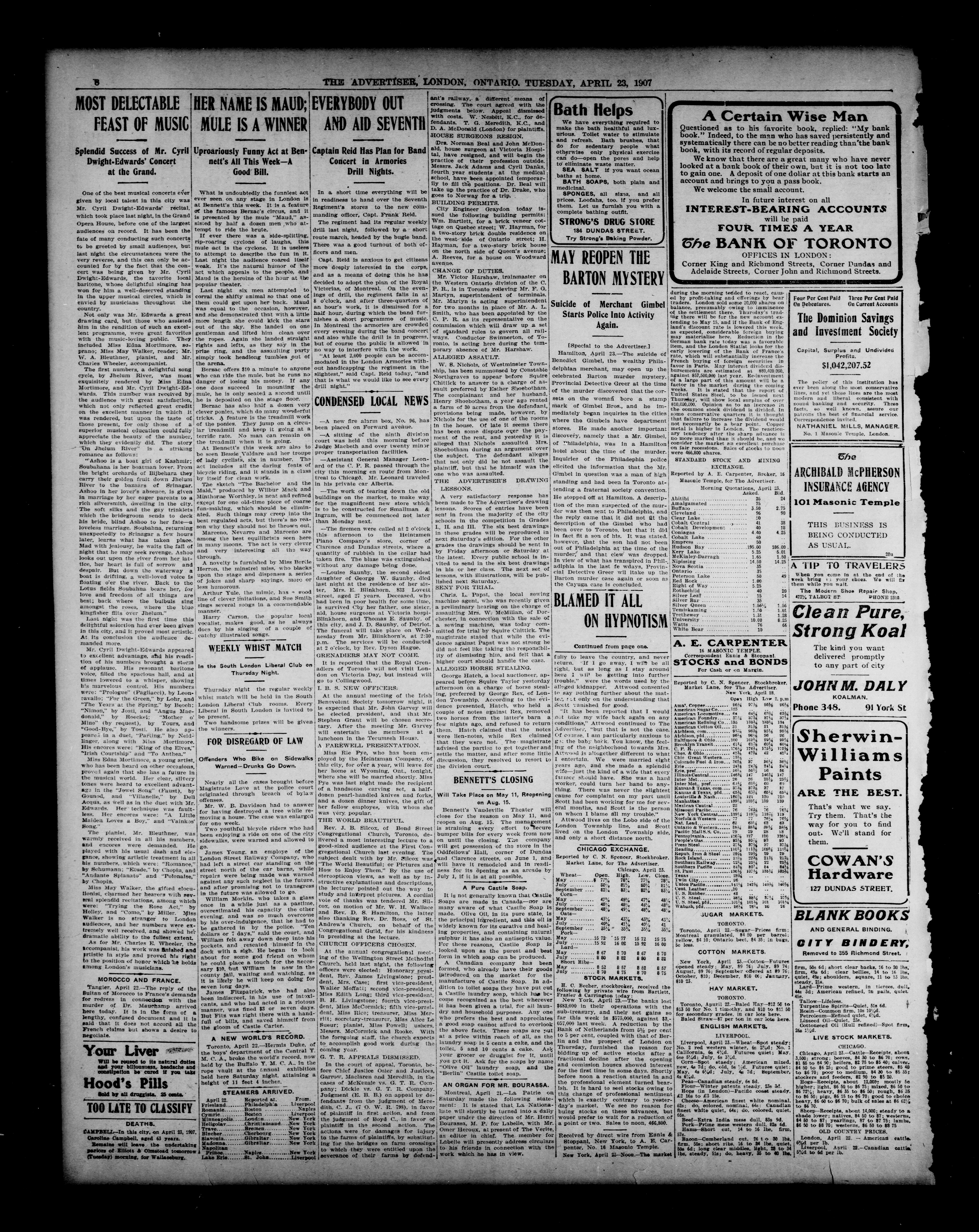 London advertiser. : London Advertiser : 43rd year, No. 19021 (April 23, 1907)