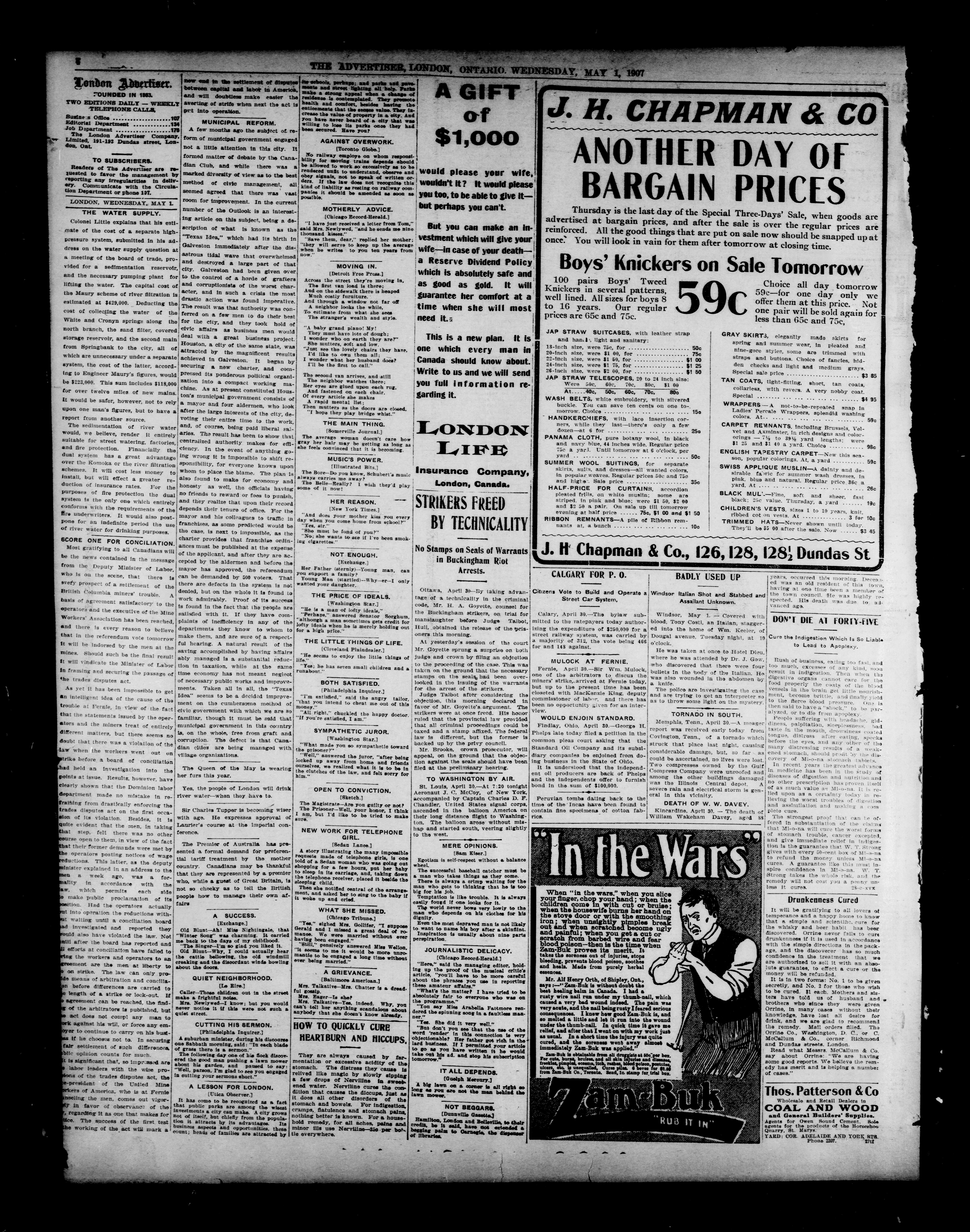 London advertiser. : London Advertiser : 43rd year, No. 19028 (May 1, 1907)
