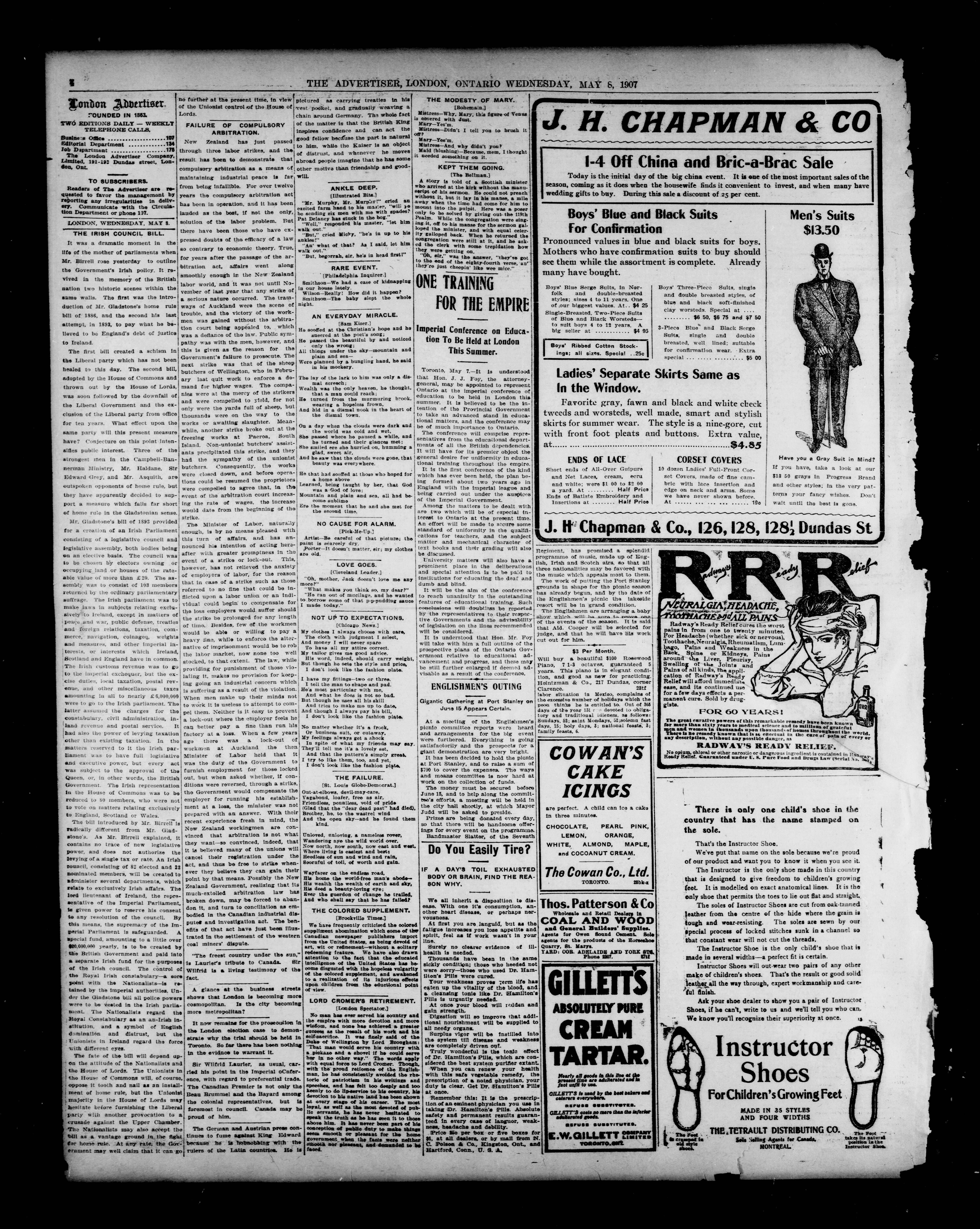 - London Advertiser : 43rd year, No. 19034 (May 8, 1907)