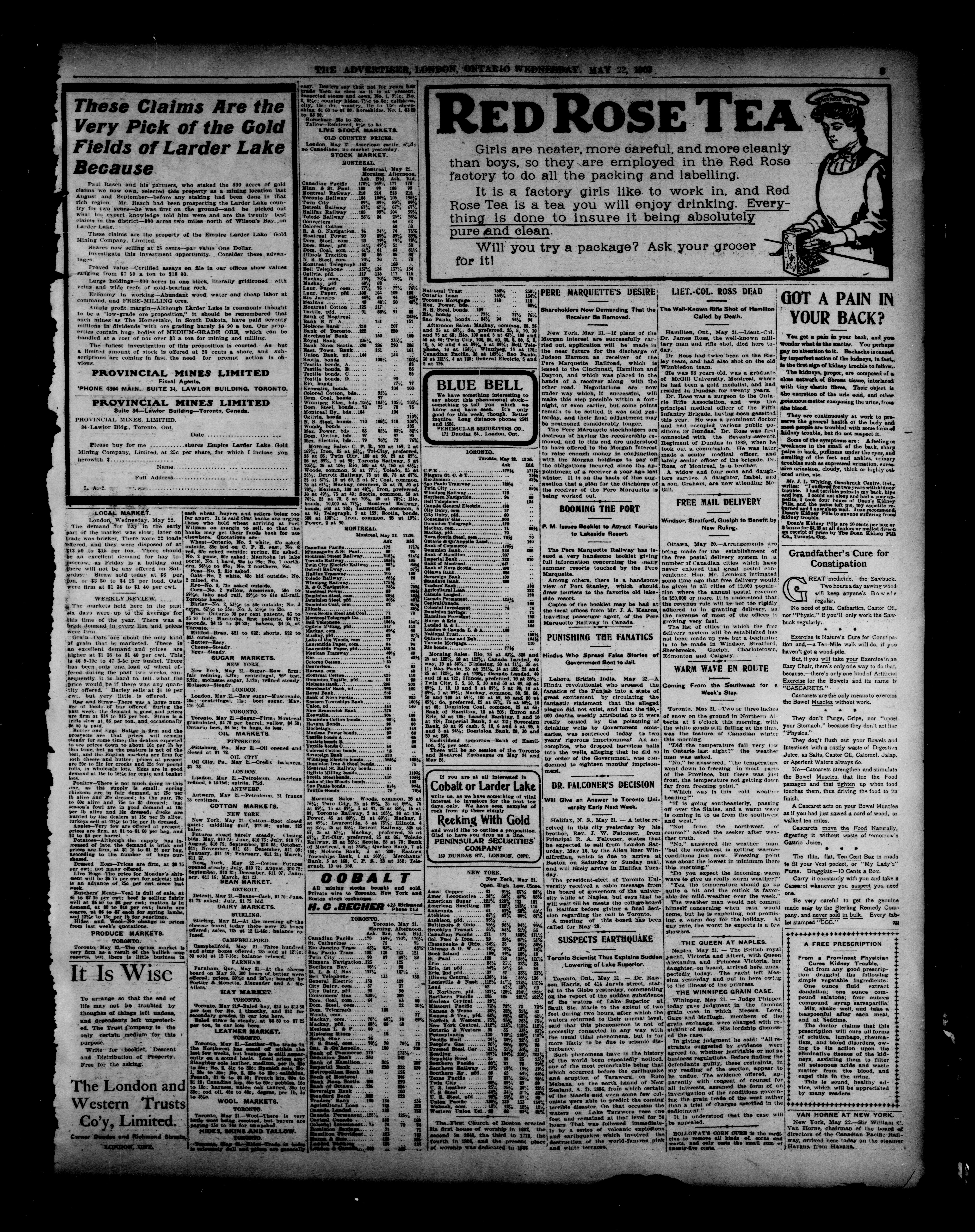 London advertiser. : London Advertiser : 43rd year, No. 19046 (May 22, 1907)