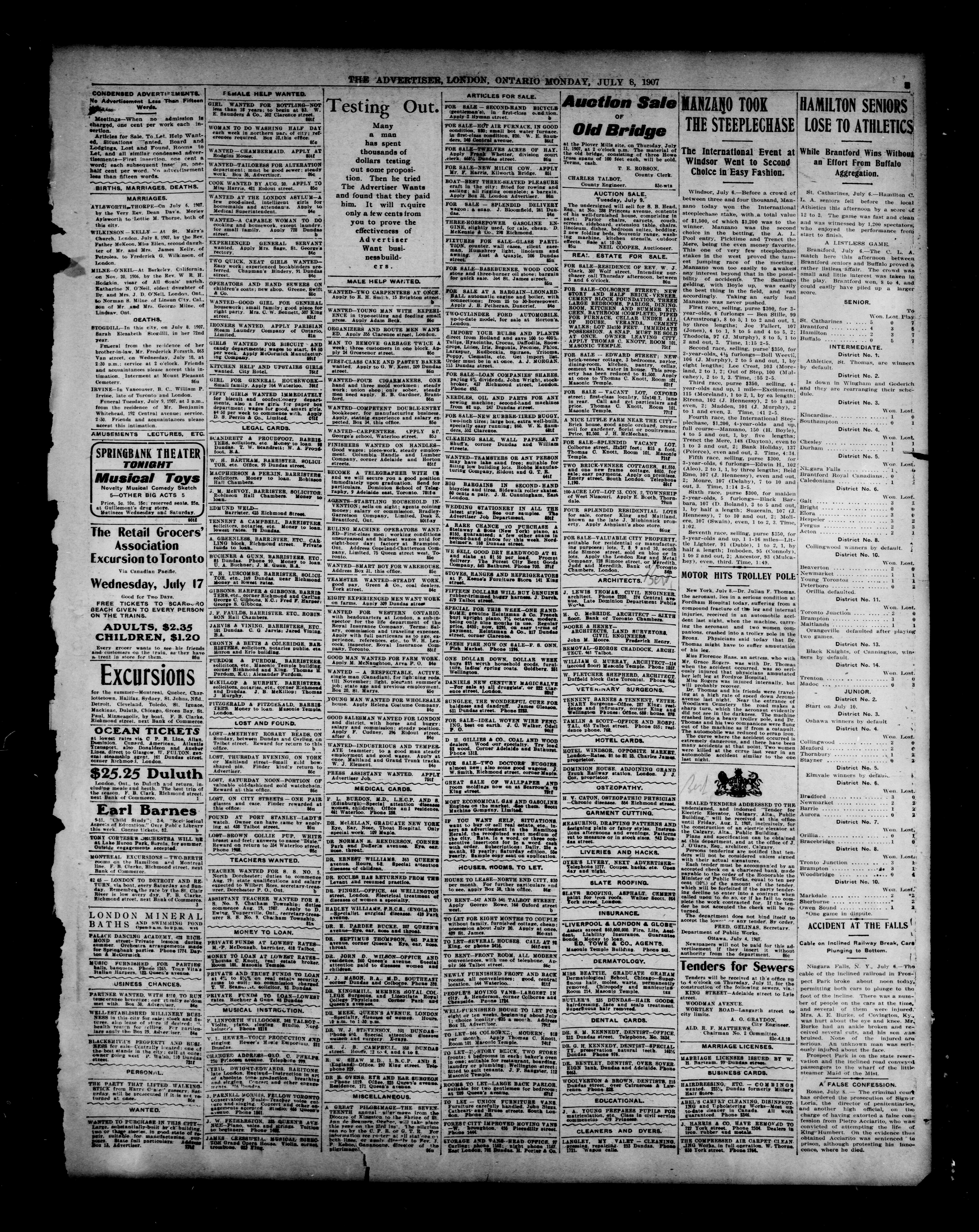 London advertiser. : London Advertiser : 43rd year, No. 19086 (July 8, 1907)