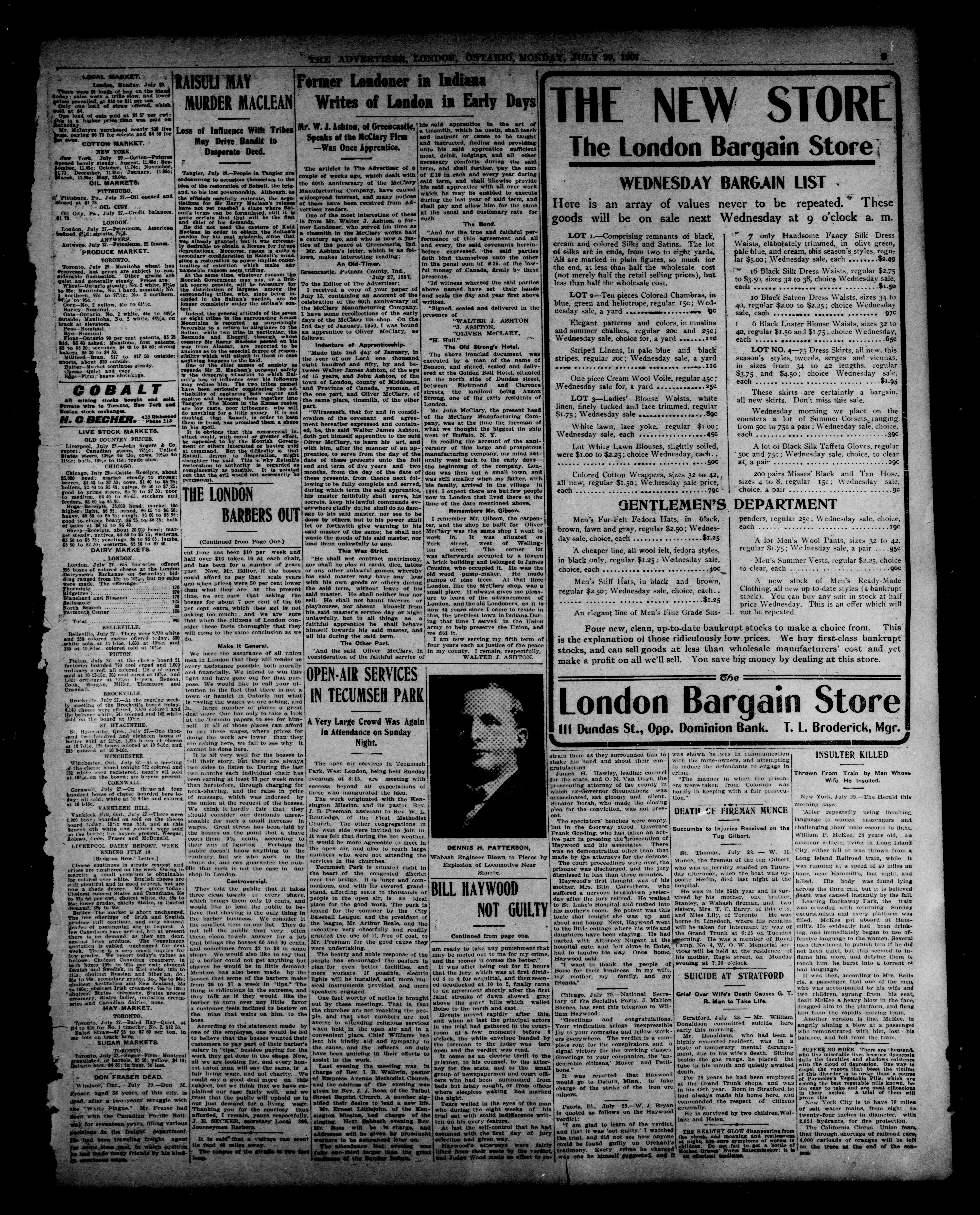 - London Advertiser : 43rd year, No. 19104 (July 29, 1907)