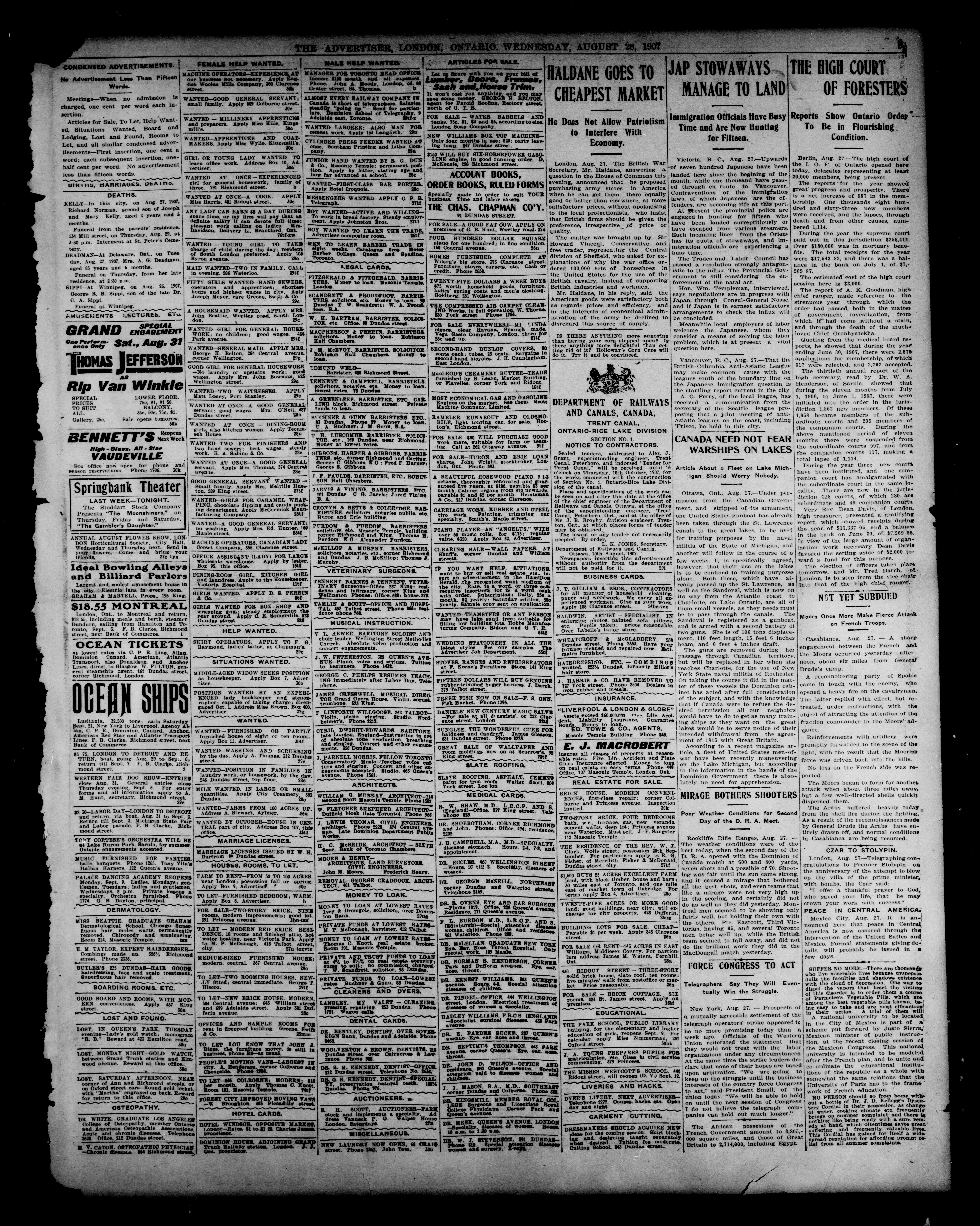 - London Advertiser : 43rd year, No. 19130 (August 28, 1907)