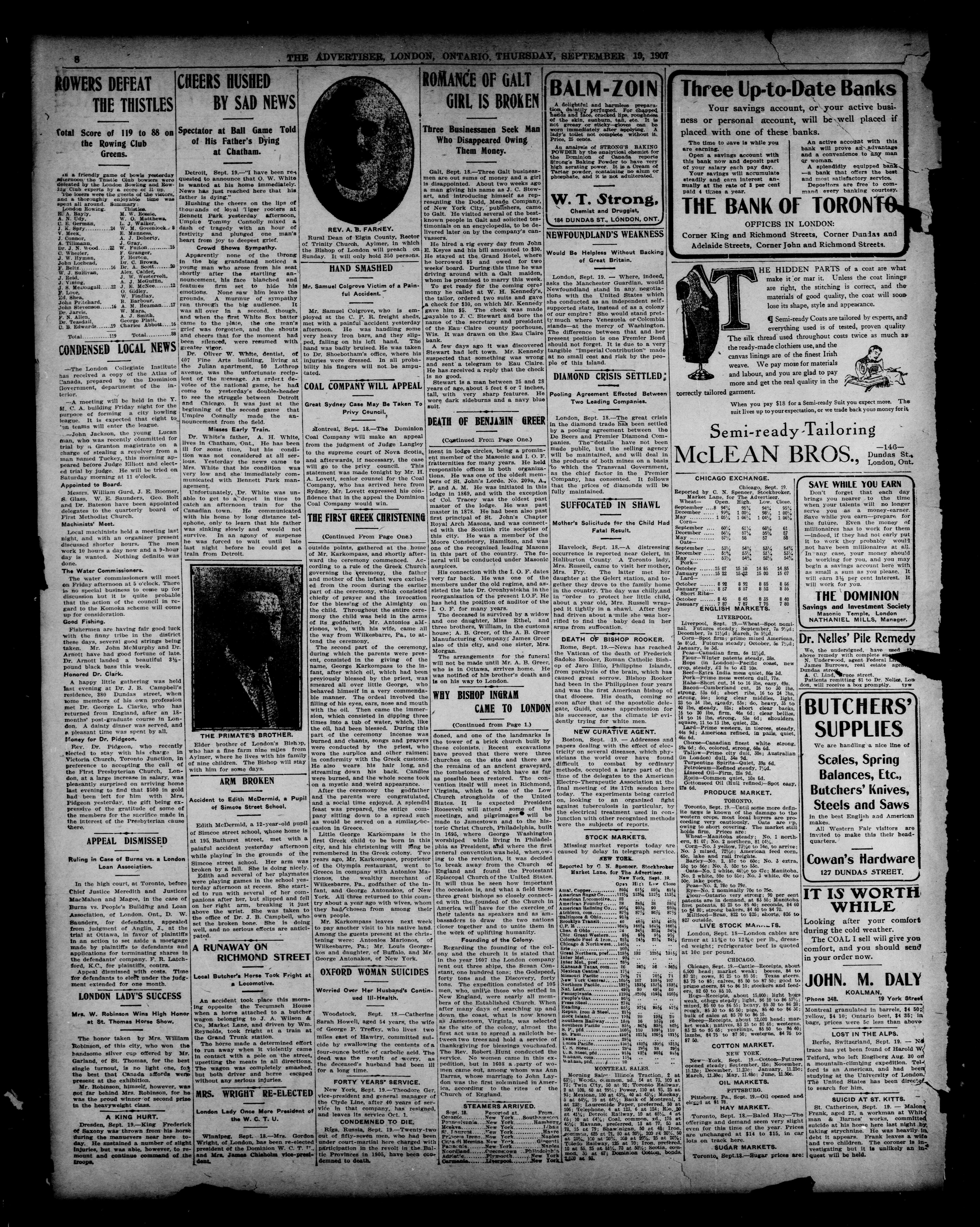 London advertiser. : London Advertiser : 43rd year, No. 19149 (September 19, 1907)