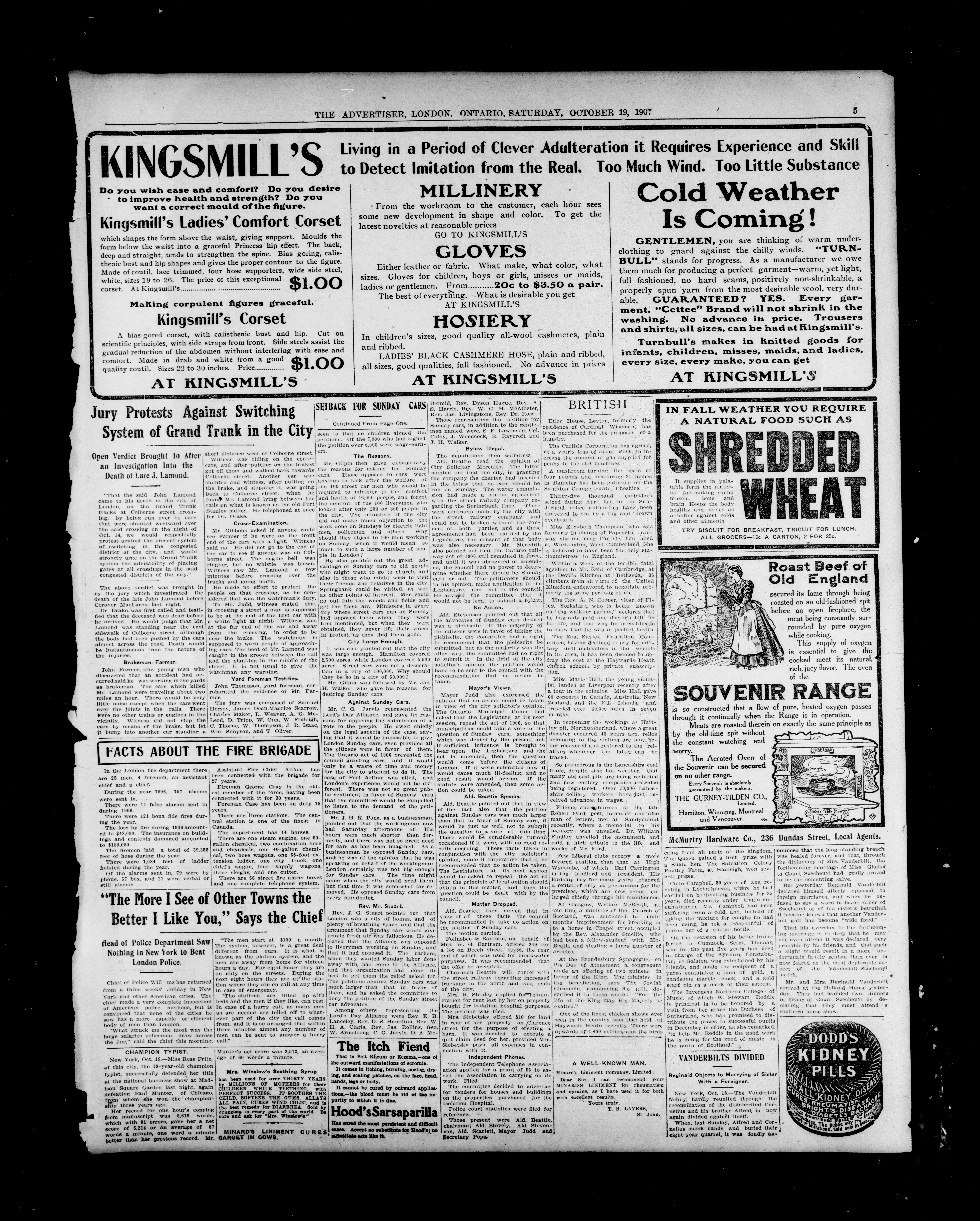 London Advertiser : 43rd Year, No. 19175 (October 19, 1907)