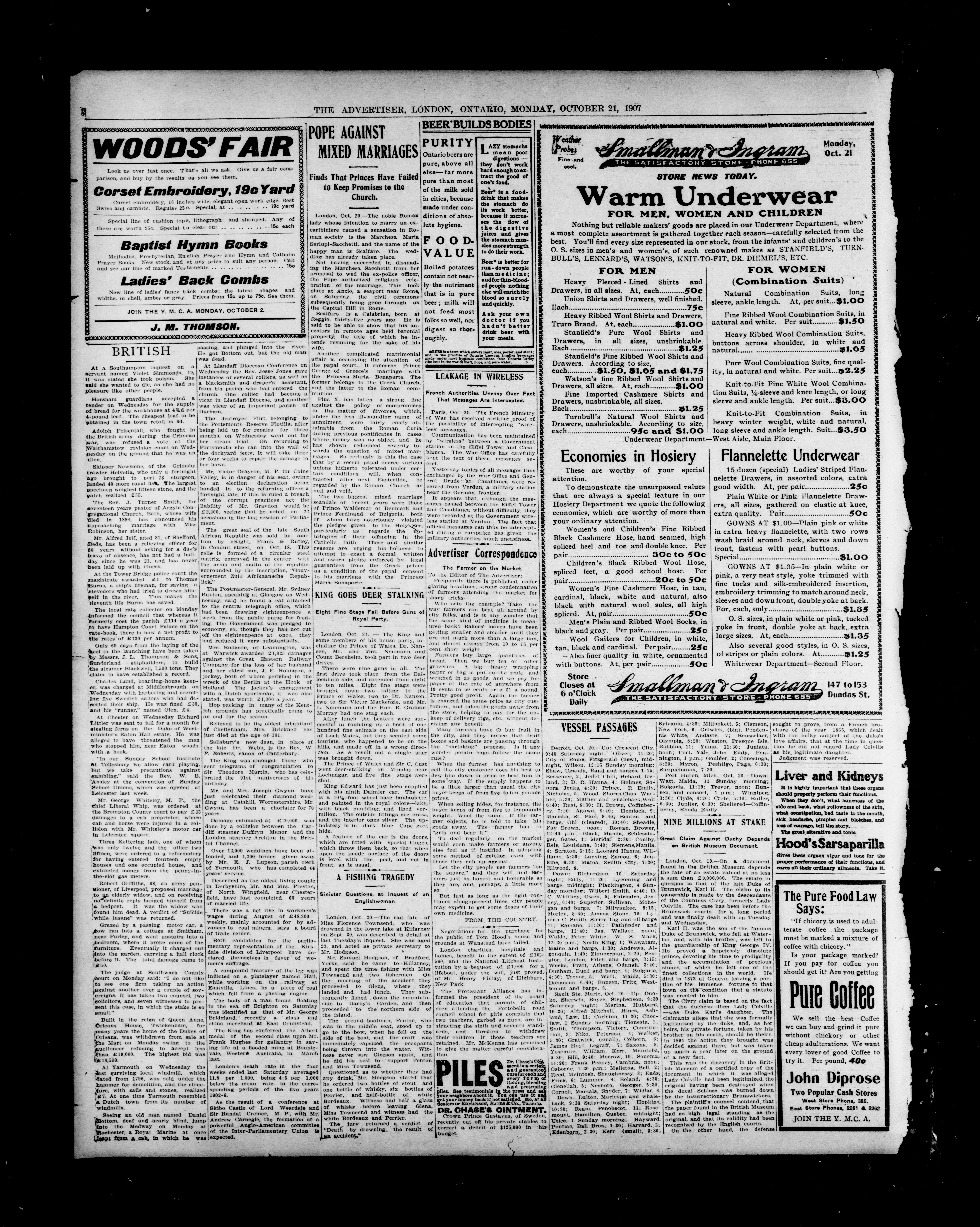 London Advertiser : 44th Year, No. 19176 (October 21, 1907)