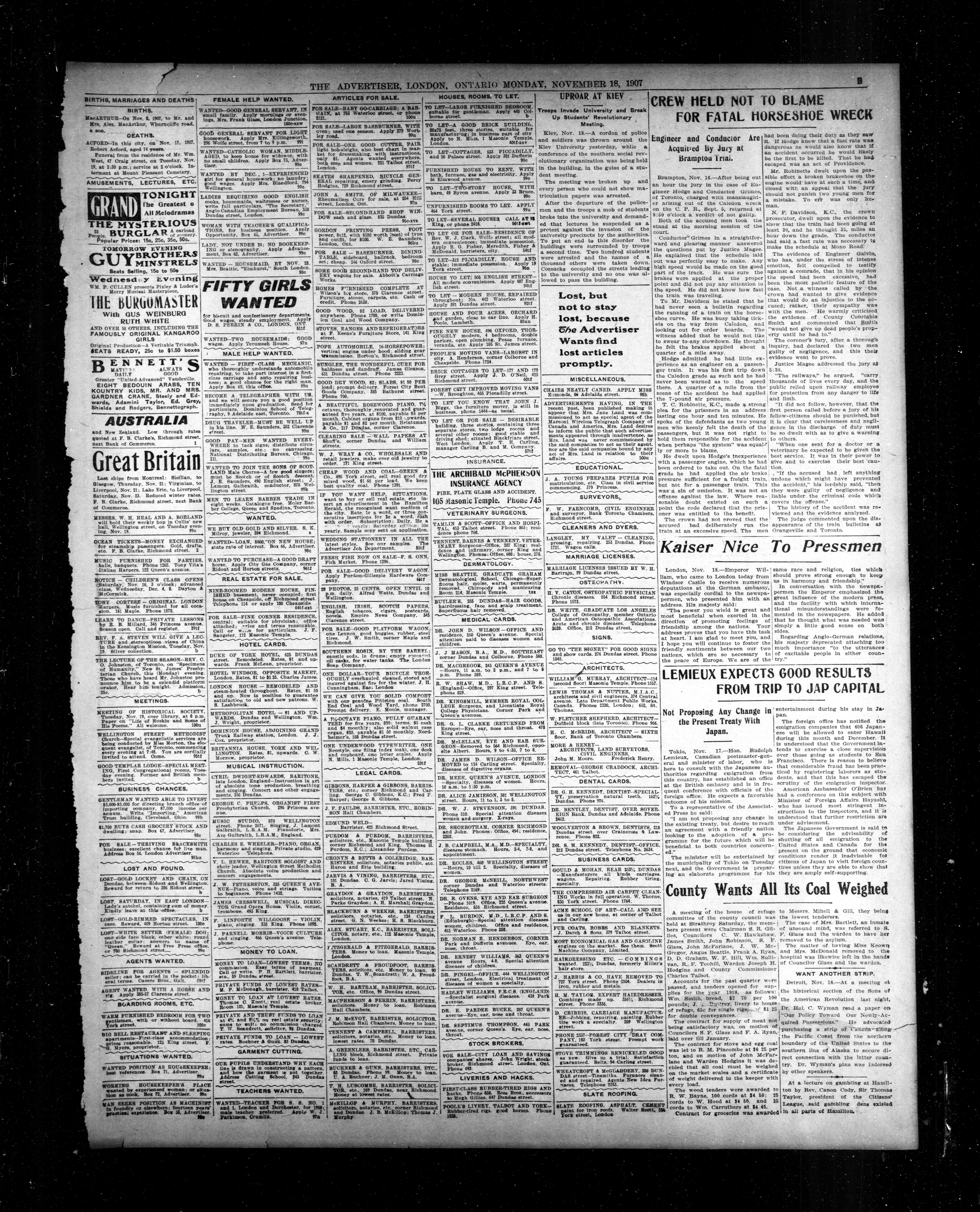 - London Advertiser : 44th Year, No. 19200 (November 18, 1907)