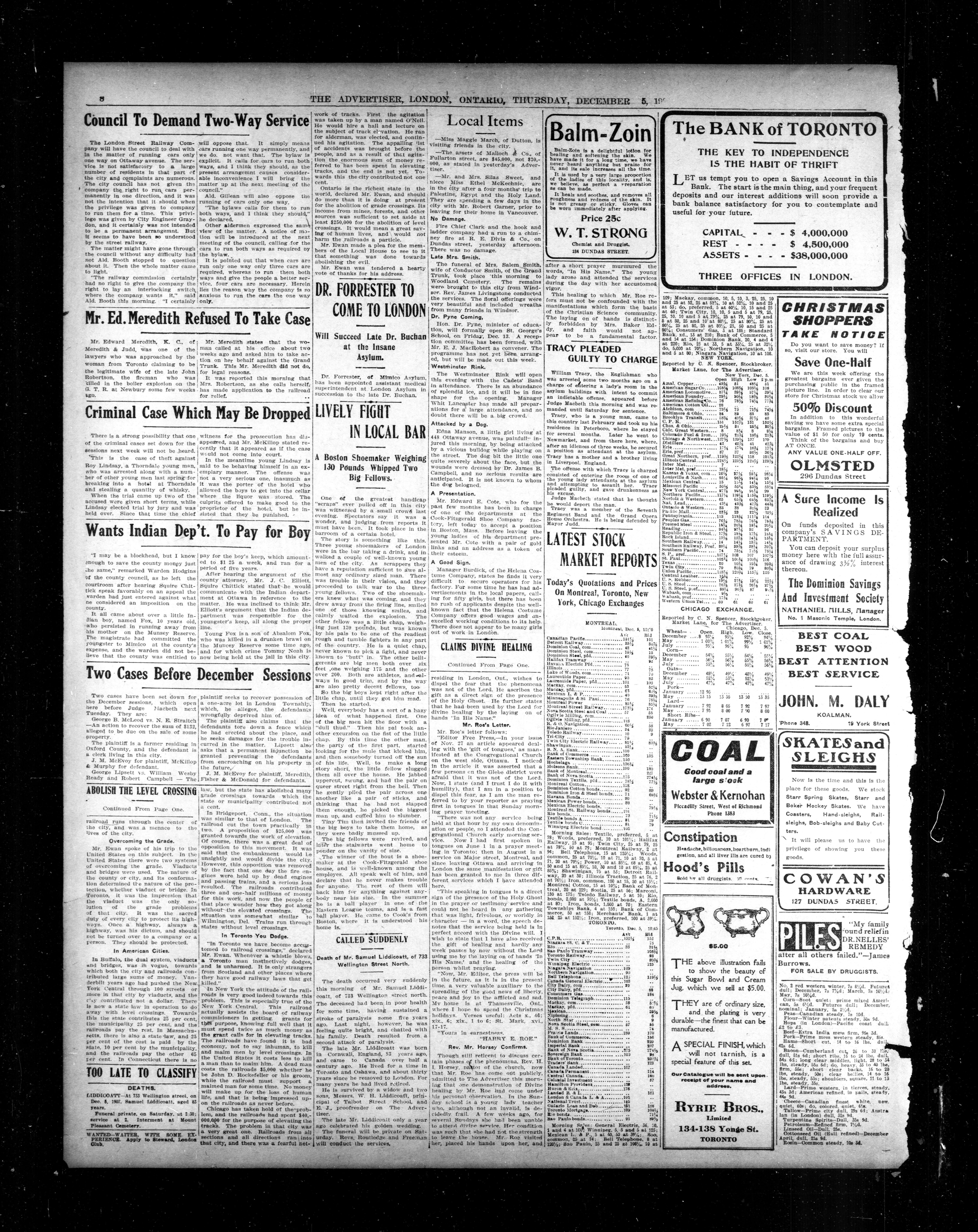 London advertiser. : London Advertiser : 44th Year, No. 19215 (December 5, 1907)