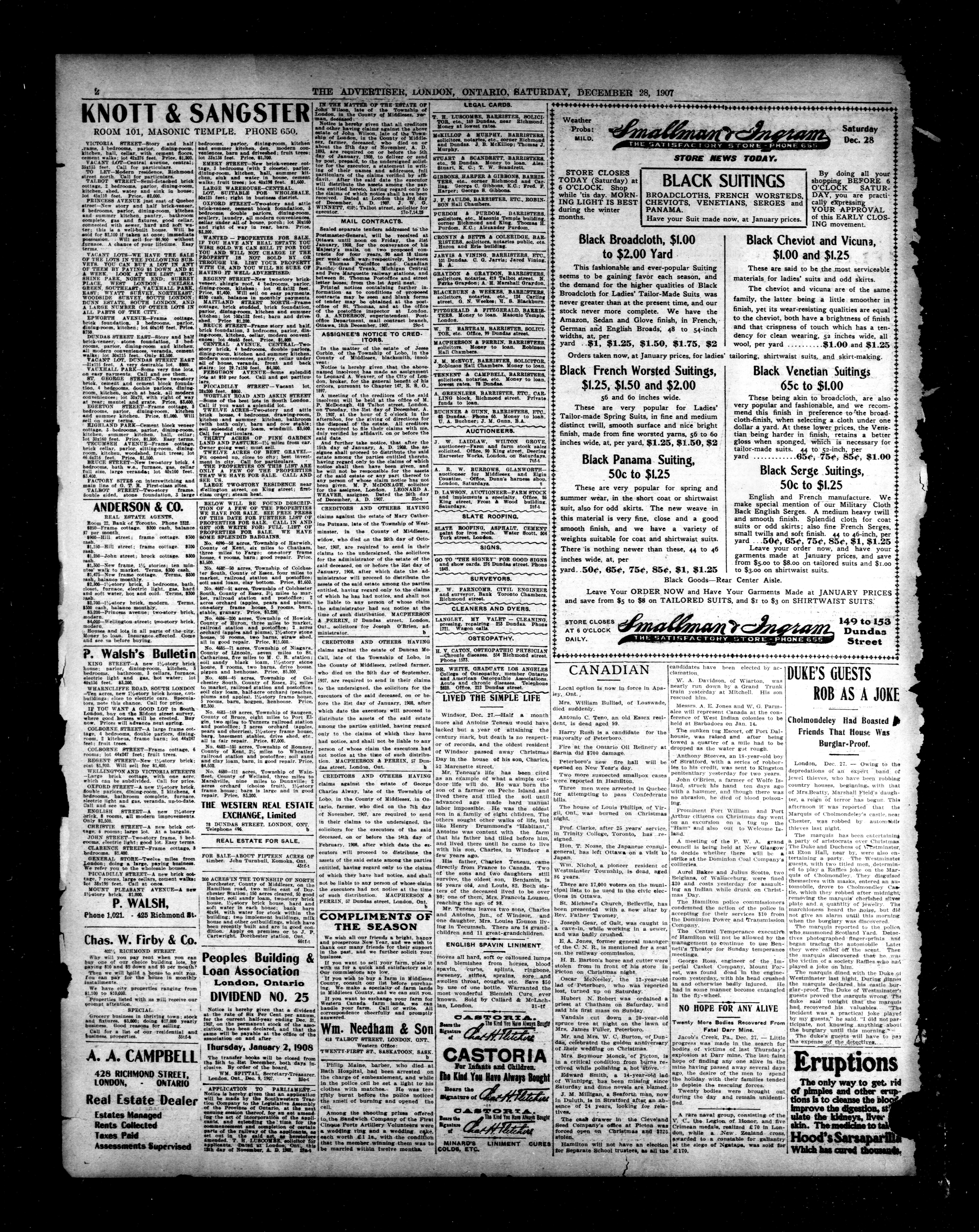 London advertiser. : London Advertiser : 44th Year, No. 19235 (December 28, 1907)